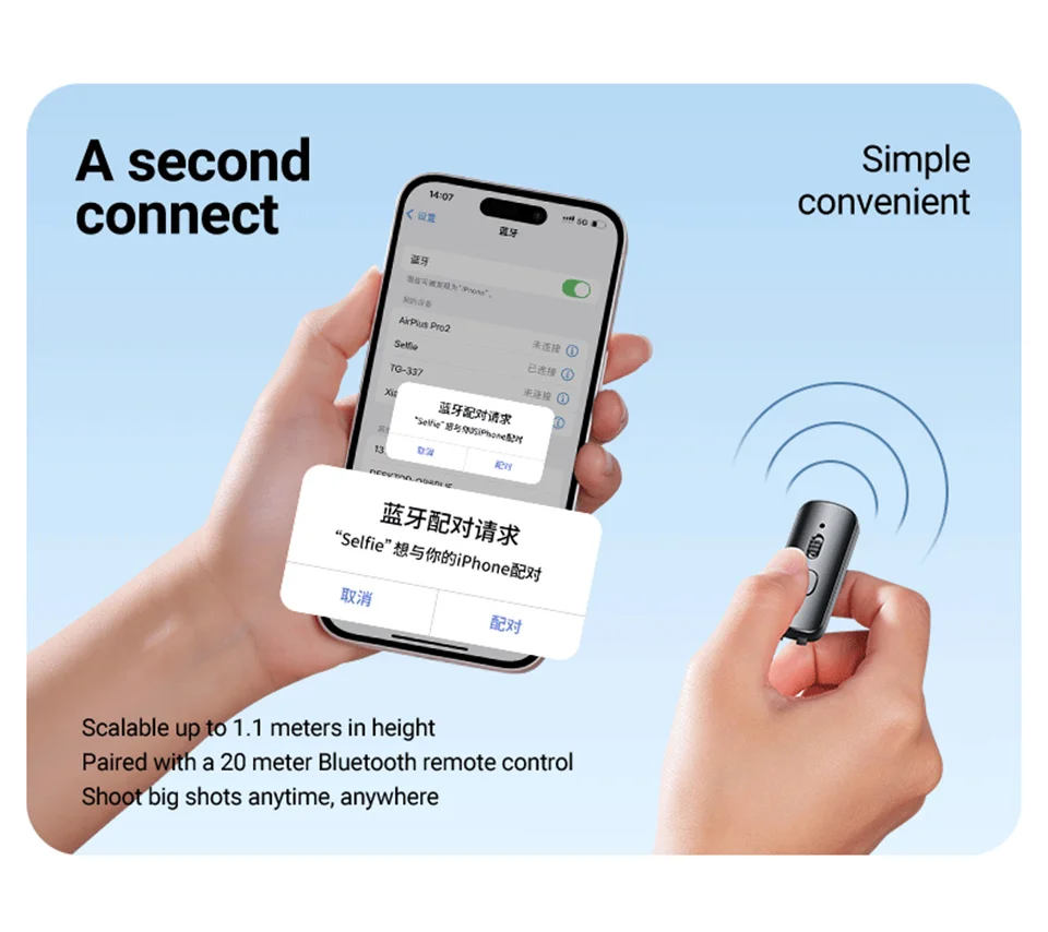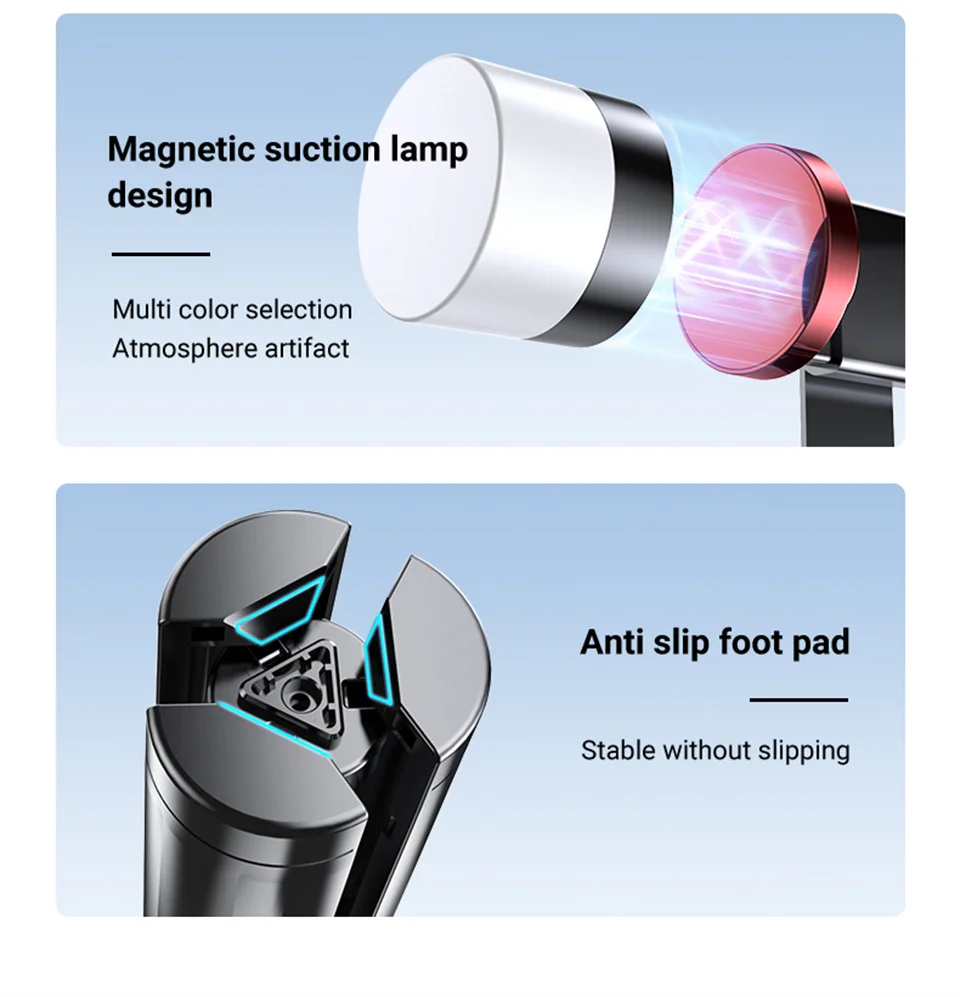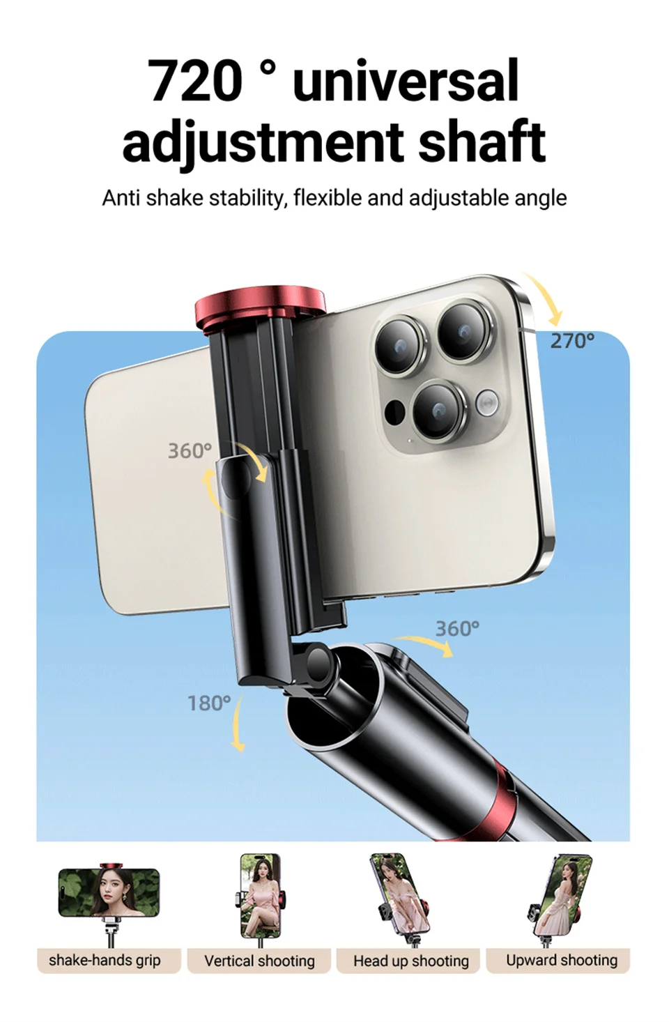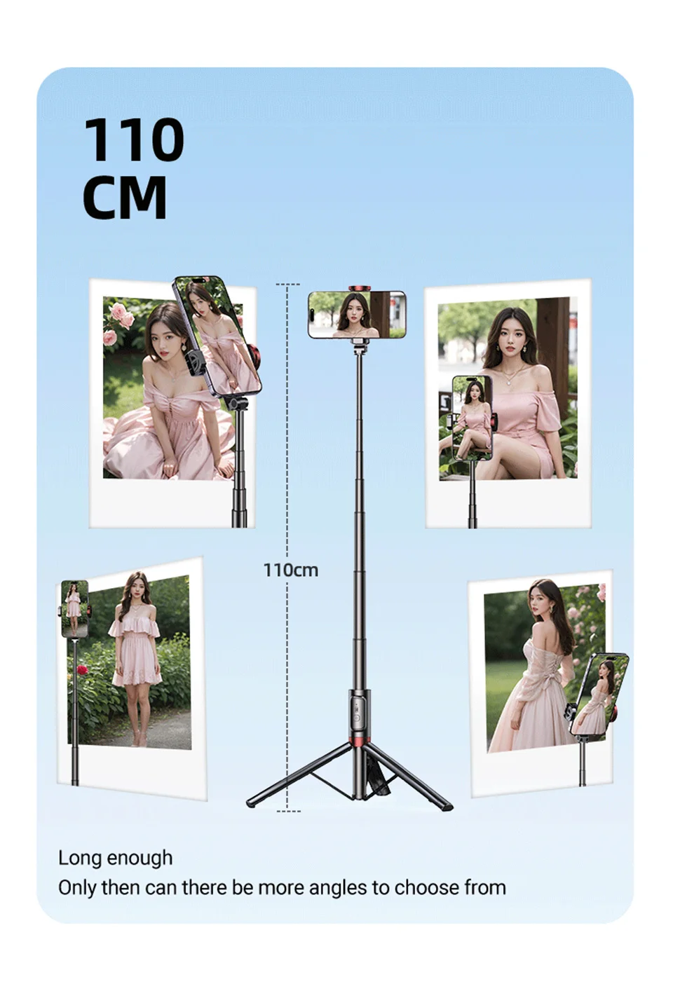 La altura máxima del poste telescópico puede alcanzar los 170 cm y la cámara ultralarga puede satisfacer las necesidades de diferentes alturas de disparo.La rotación le proporciona la flexibilidad del mejor ángulo de visión.