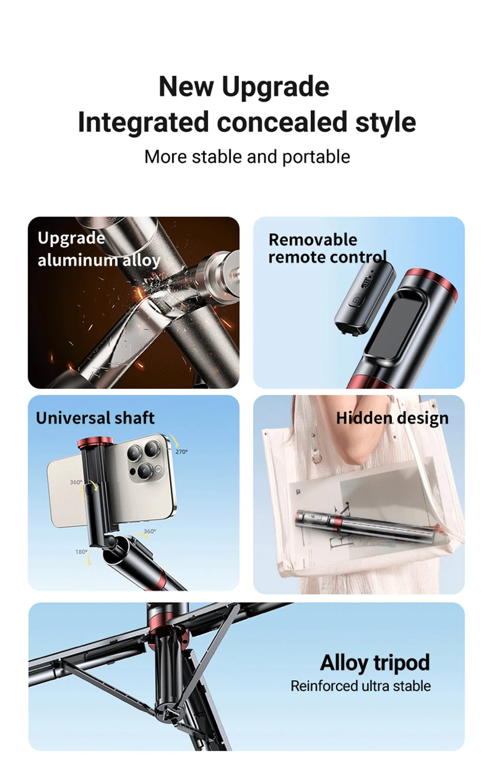 Palo para selfies integrado oculto, ultraligero y fácil de transportar.