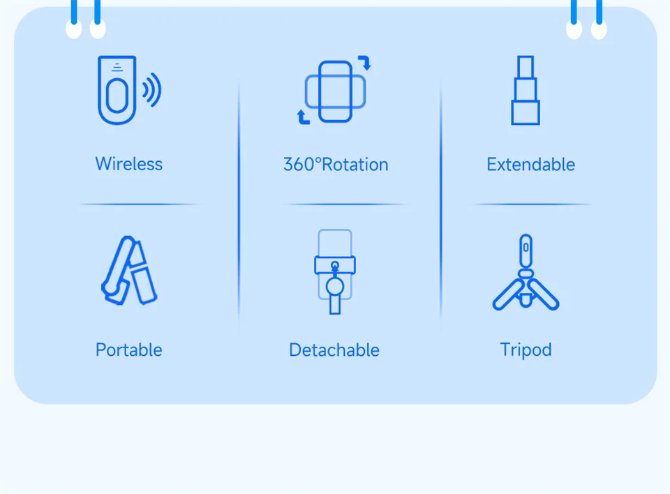 La altura máxima del poste telescópico puede alcanzar los 1,7 m y la cámara ultralarga puede satisfacer las necesidades de diferentes alturas de disparo.La rotación le proporciona la flexibilidad del mejor ángulo de visión.