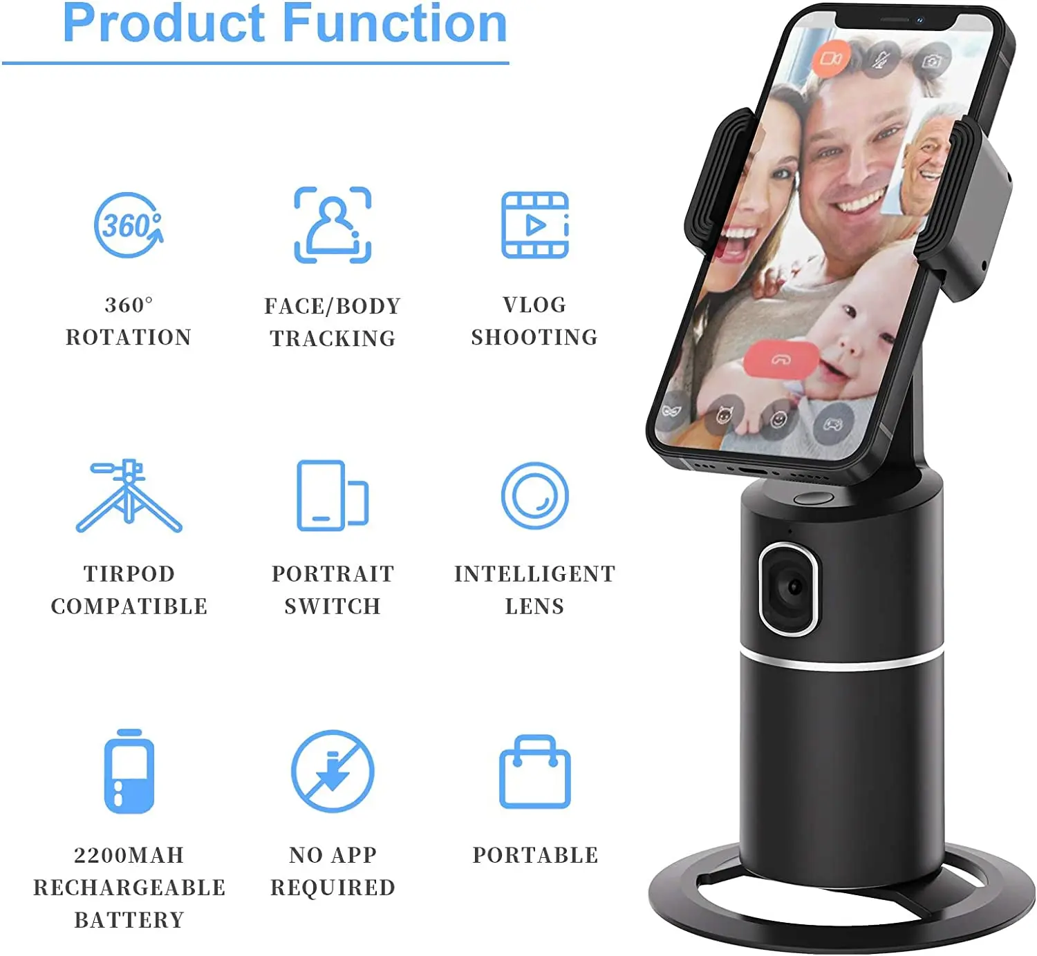 Comprar Palo de Selfie inteligente para teléfono inteligente, soporte de seguimiento de objetos faciales, cámara Vlog, sin aplicación, 360 grados