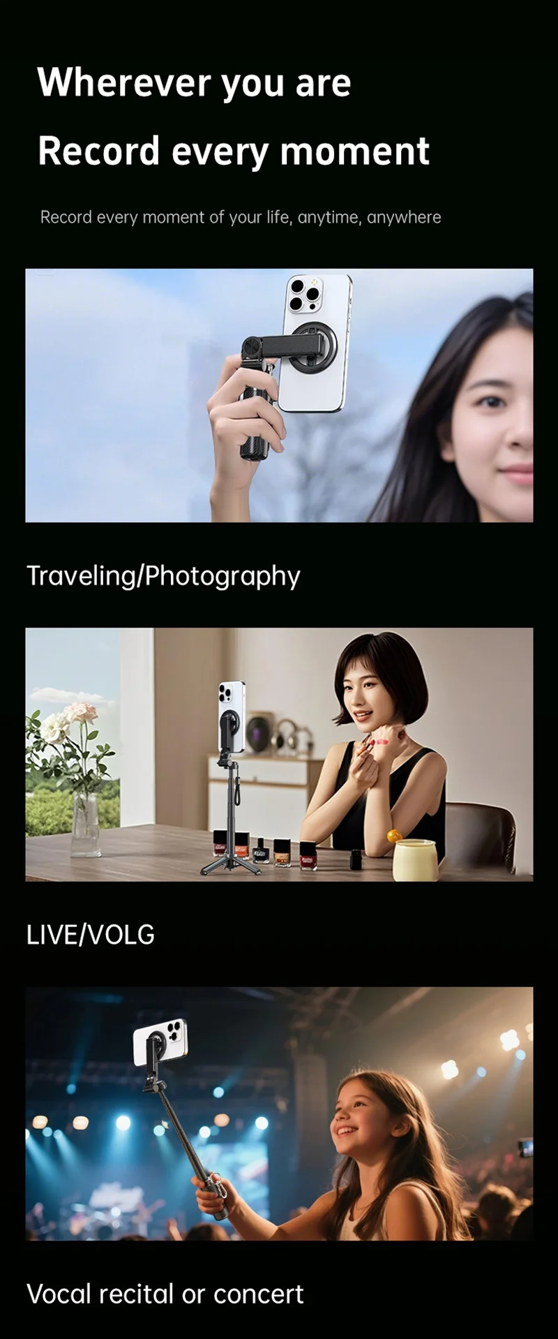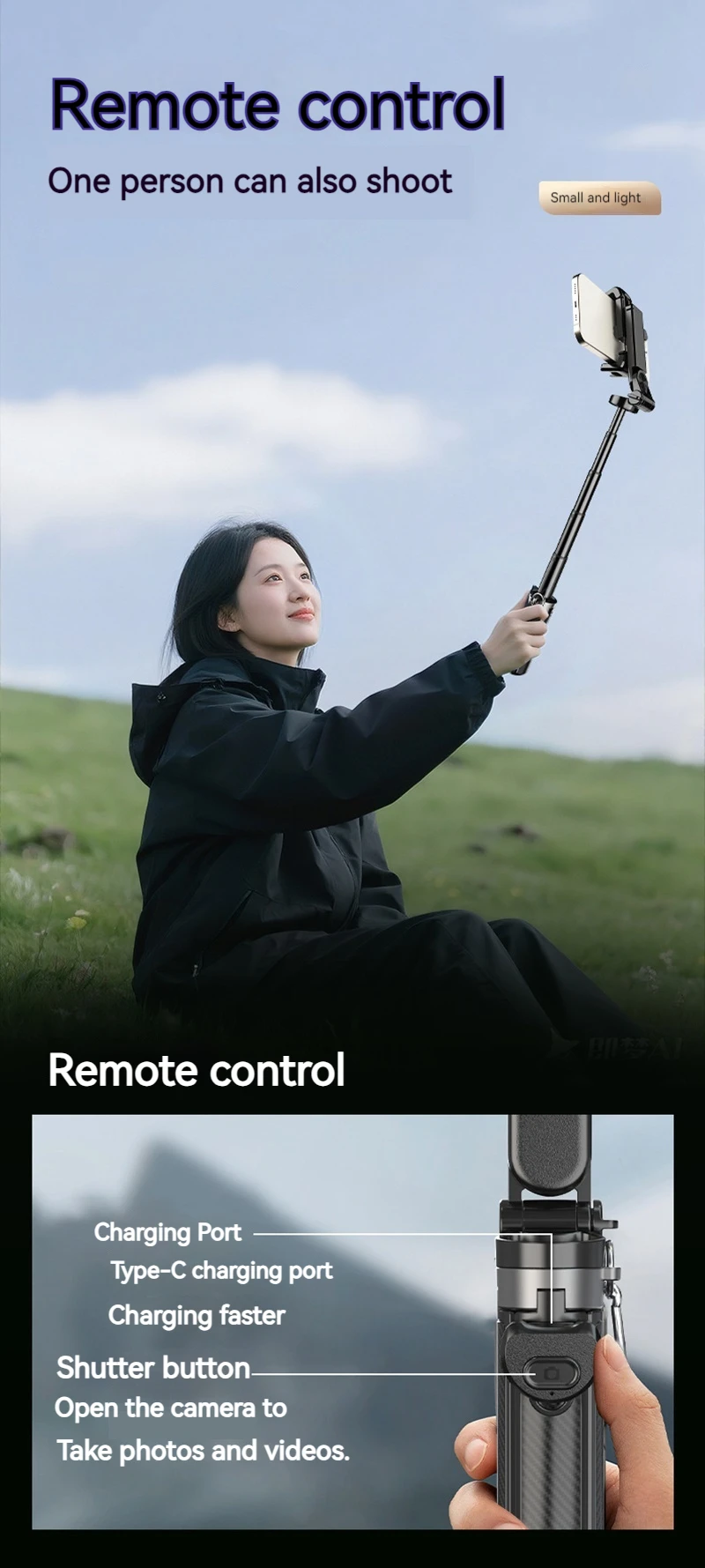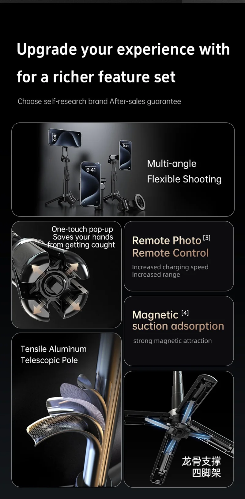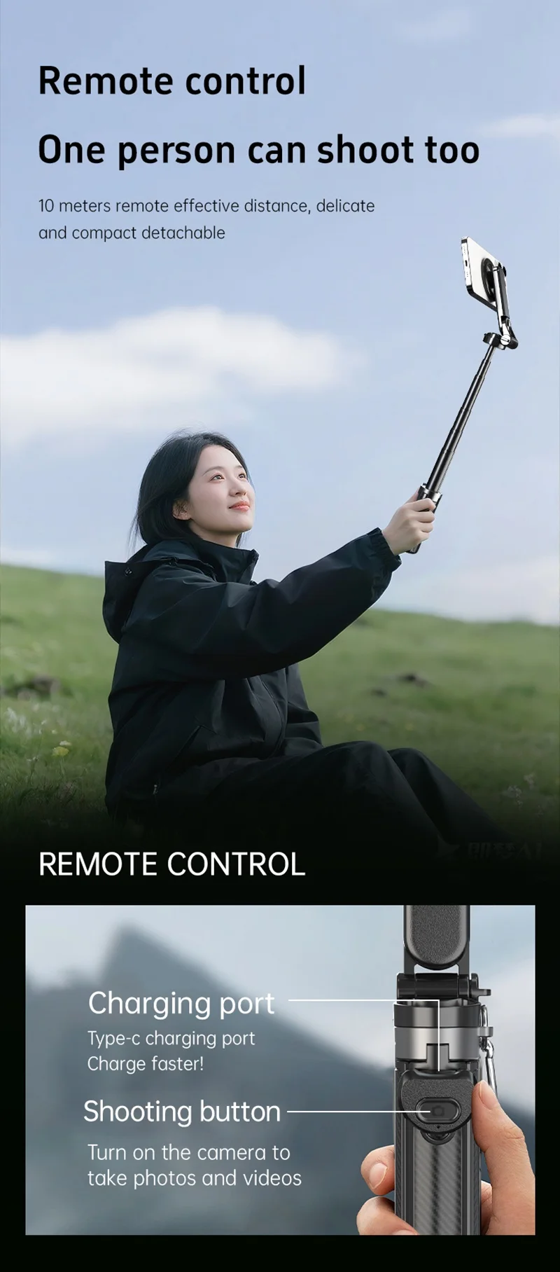 Palo para selfies telescópico giratorio 360 con base magnética, diseño Mini compacto, perfecto para teléfono, viajes, fotografía al aire libre