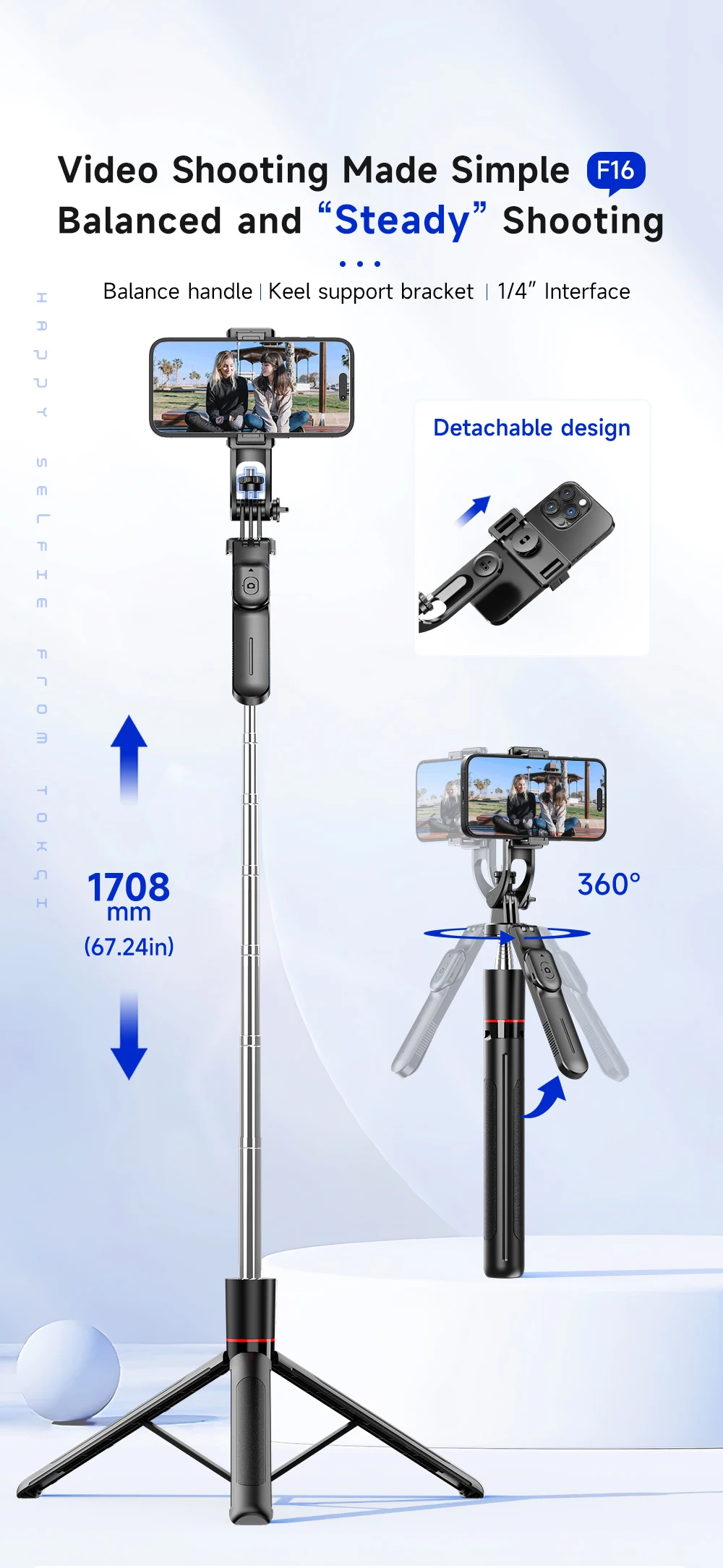 2.Mango equilibrado que permite 360° disparo panorámico;