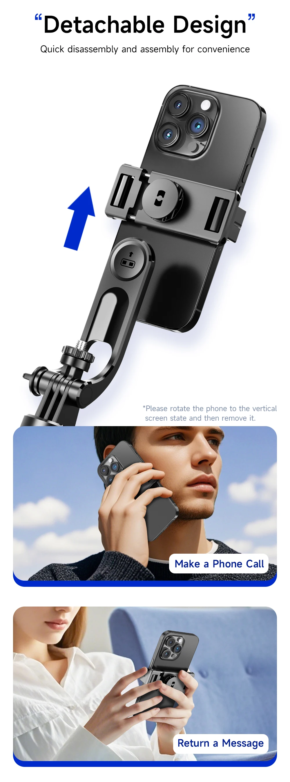 3.Abrazadera para teléfono desmontable;