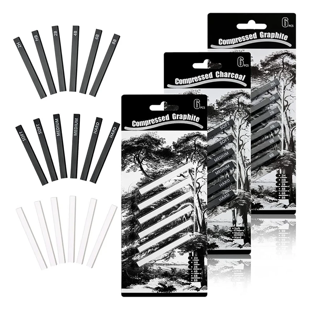 Cantidad abundante: Hay 12 tipos diferentes de varillas de grafito mixto negro, a saber, 2H, 2B, 4B, 6B, 8B, HB, suave, medio, duro, Y 6 varillas de carbón blanco comprimido, que son suficientes para que elijas y uses. Son muy adecuados para crear hermosas imágenes y dibujos para satisfacer sus diferentes necesidades para diferentes tipos de pintura