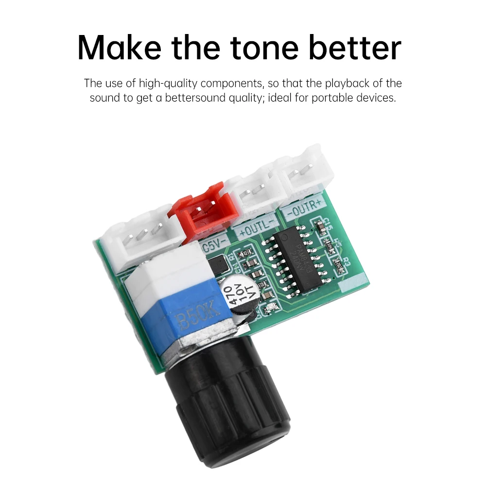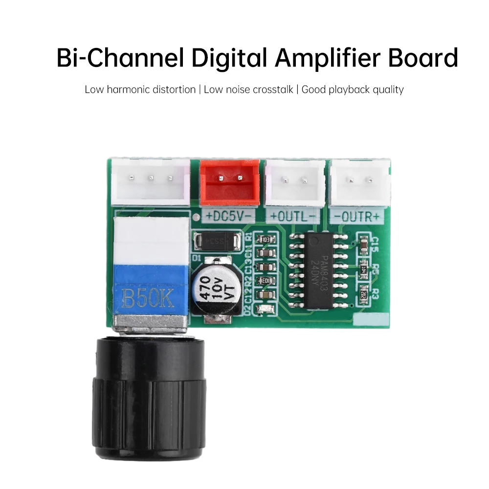 1.Utilizando el chip PAM8403, es un amplificador de potencia de audio Clase D de 3 vatios 1C, con baja distorsión armónica y características de diafonía de bajo ruido.
