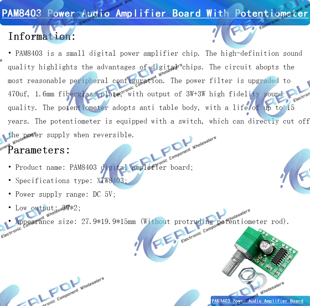 PAM8403 Placa amplificadora de audio de potencia de 5 V 2 canales 3 W W Control de volumen Alimentación USB