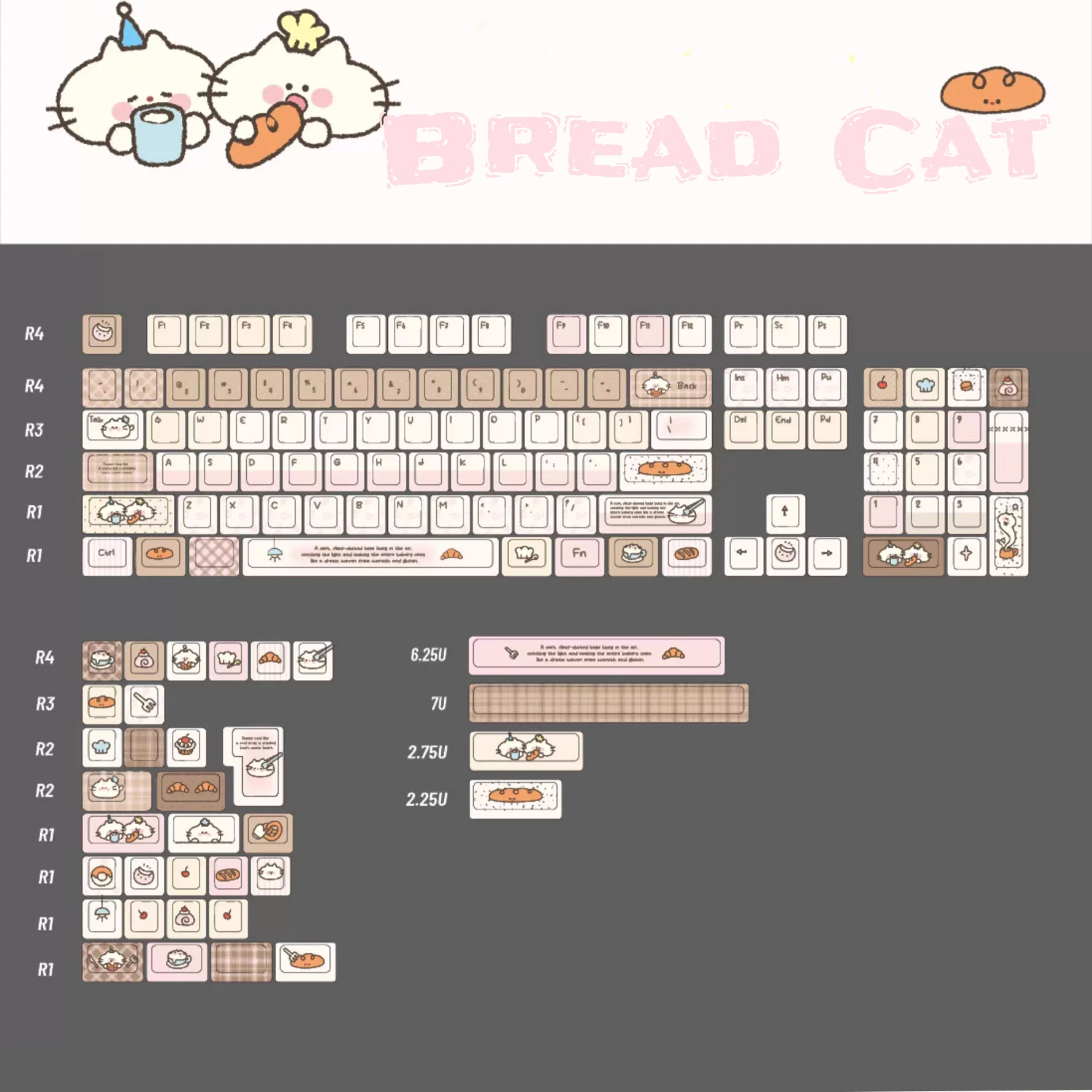 Pan gato Keycap cereza perfil 138 teclas dibujos animados lindo PBT teclas personalizadas para teclado mecánico 2,25/2.75U barra espacial ISO Enter