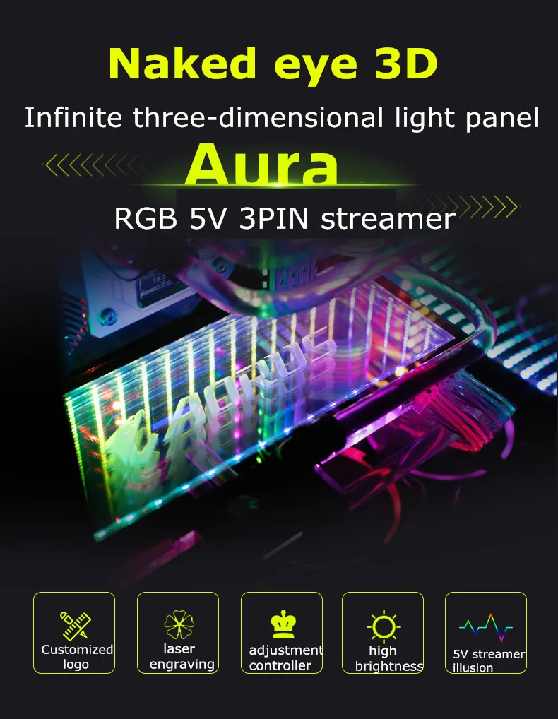 Comprar Panel 3D Infinity RGB para PC, placa de iluminación, chasis personalizado, decoración, GPU, placa trasera, Gamers, Transperant AURA MOD