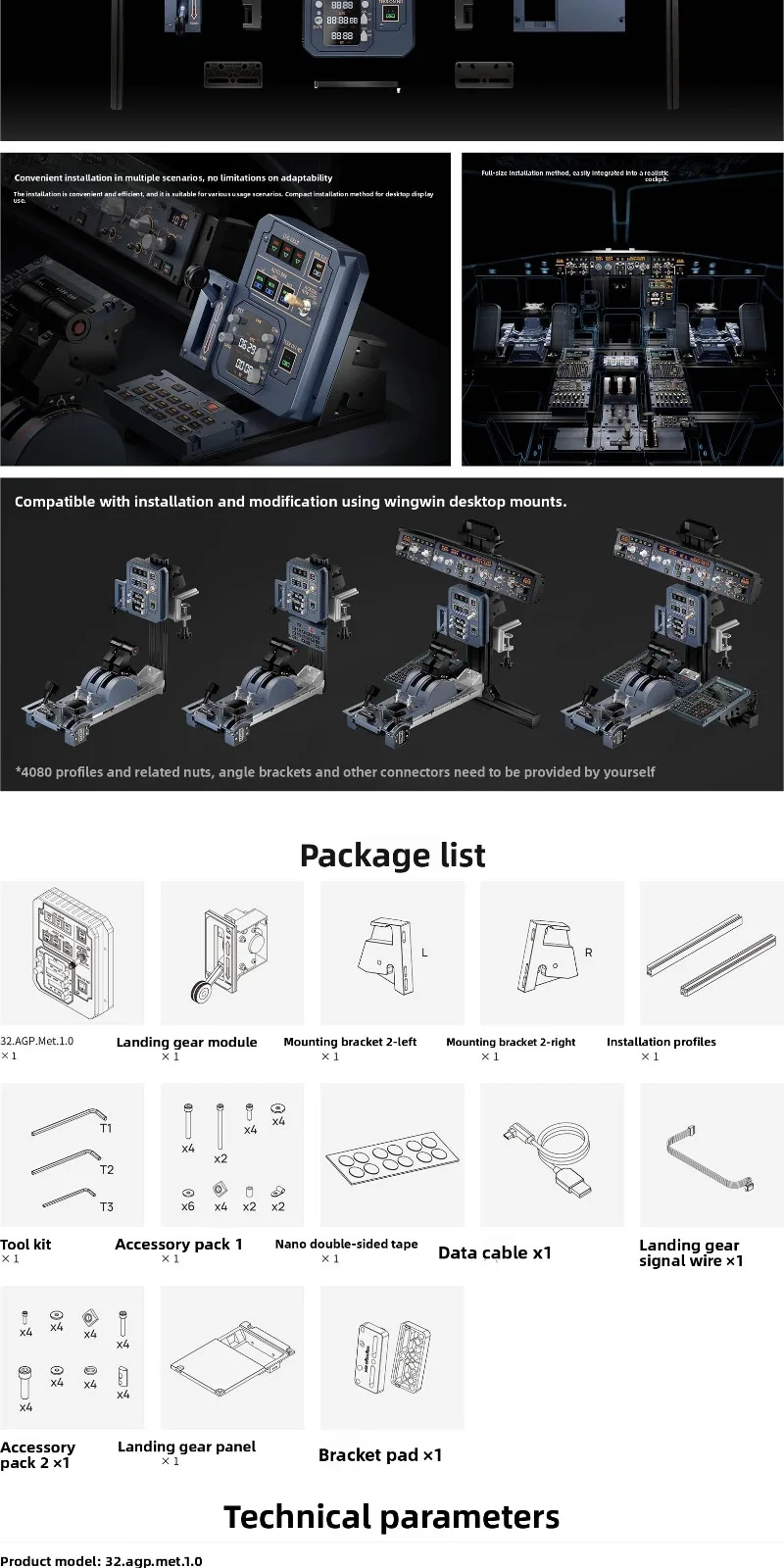 Panel de aterrizaje y despegue Winwing AGP A3XX para juegos de simulación de vuelo Compatible con FENIXA320, PMDG737, para PC X-Plane MSFS