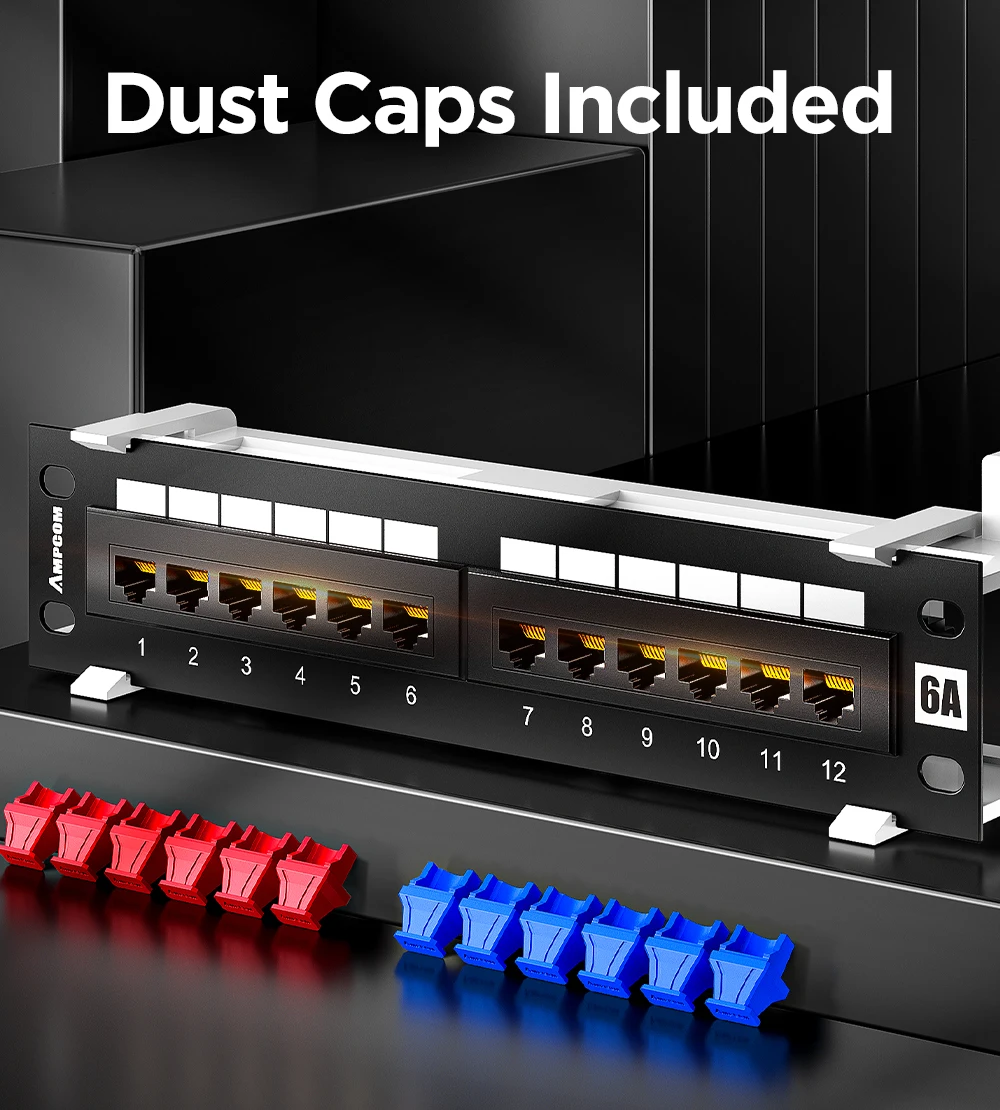 Comprar Panel de conexión AMPCOM de 12 puertos Cat 6A / Cat6UTP Mini panel de conexión con soporte de montaje en pared incluido negro