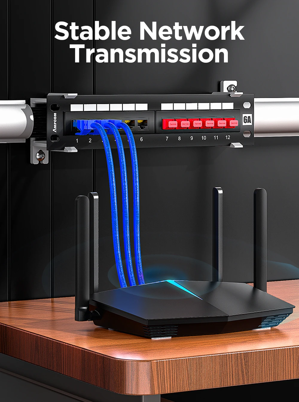 Comprar Panel de conexión AMPCOM de 12 puertos Cat 6A / Cat6UTP Mini panel de conexión con soporte de montaje en pared incluido negro