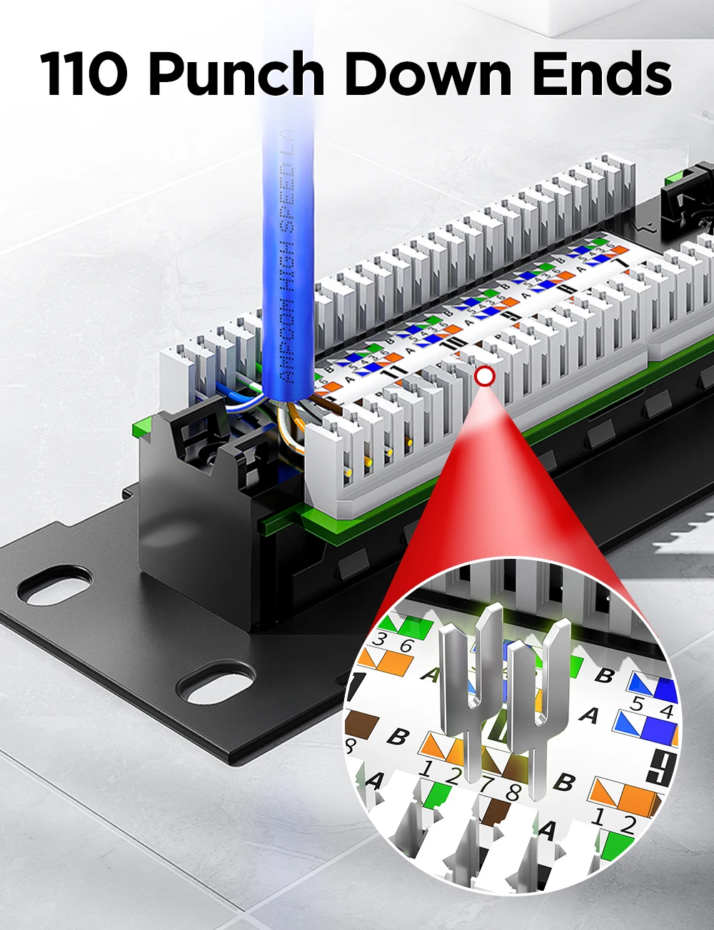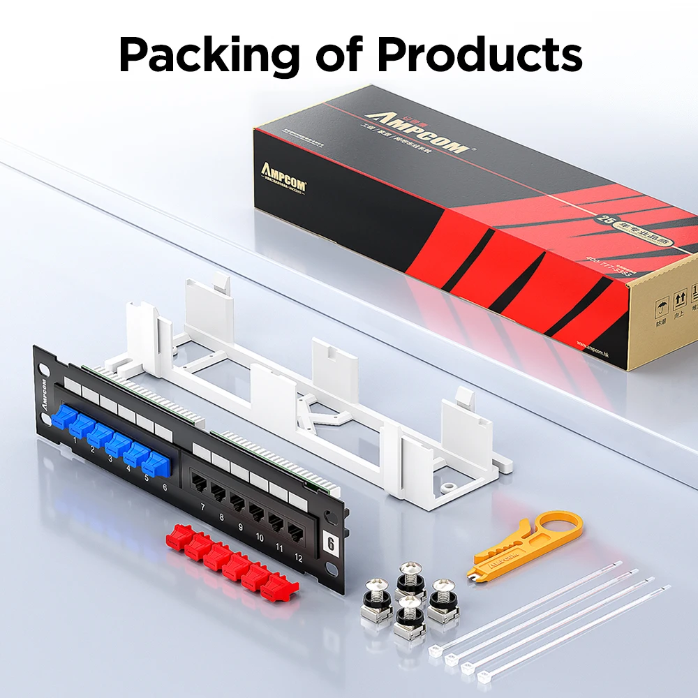 El panel de conexión de montaje en pared sin blindaje Cat6/6 de 12 puertos de AMPCOM con soporte 89D incluido, proporciona una conexión de 250MHz a 12 puertos Ethernet Gigabit 2. 2. Este panel de conexión de montaje en pared Cat6/ 6a de 10 pulgadas es adecuado para aplicaciones domésticas o SMB. Control de desorden de cables con soportes de paso de cable extraíbles incluidos y bridas para cables. Una superficie de escritura sobre cada puerto permite a los usuarios etiquetar las conexiones respectivas. Este panel de conexión compacto/Mini también incluye un soporte de montaje en pared 89D para instalaciones verticales u horizontales. El diseño del soporte de montaje en pared estilo snap-in proporciona un acceso rápido y fácil a las conexiones de cable cuando sea necesario para la instalación o la solución de problemas.
