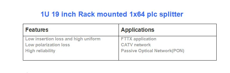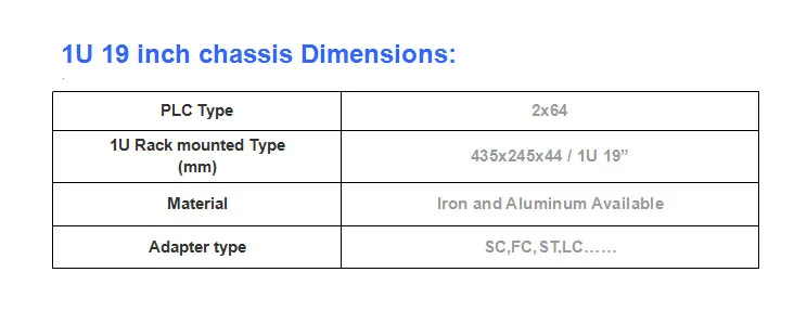 Panel de conexión en rack de 19” con divisor PLC 1*64 y adaptador dúplex SC/APC Caja de terminación 1U con acoplador ODN 435*245*44cm
