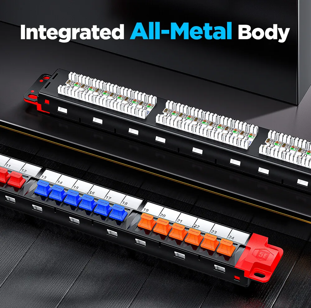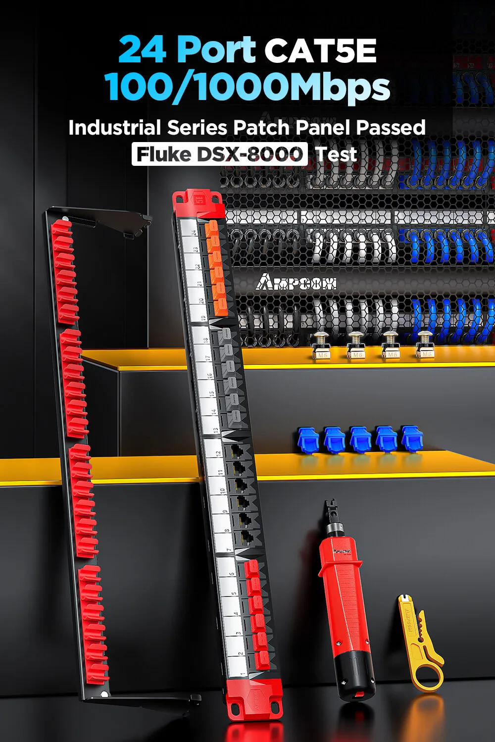 Panel de conexión CAT5e de 24 puertos serie industrial AMPCOM de 19"