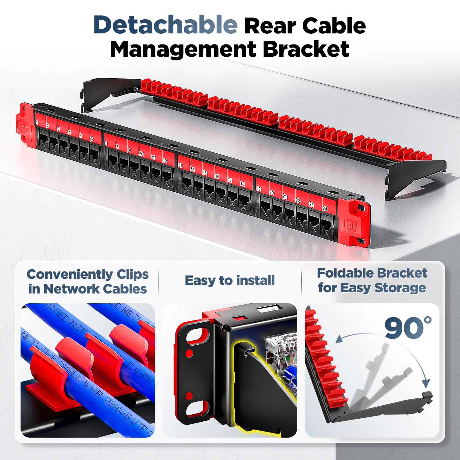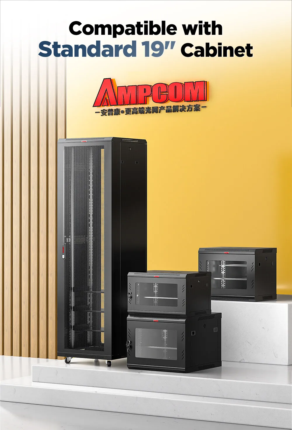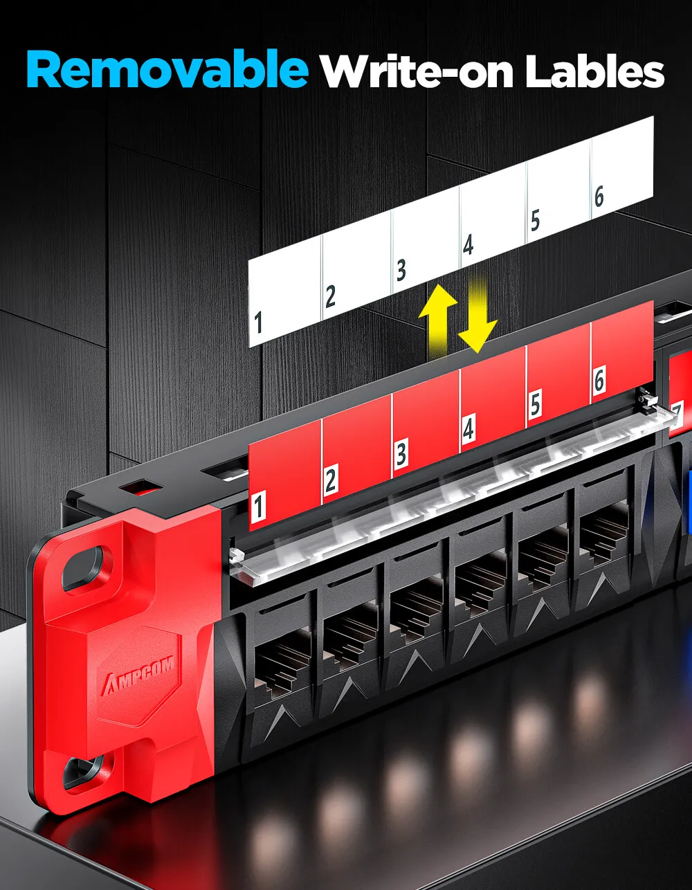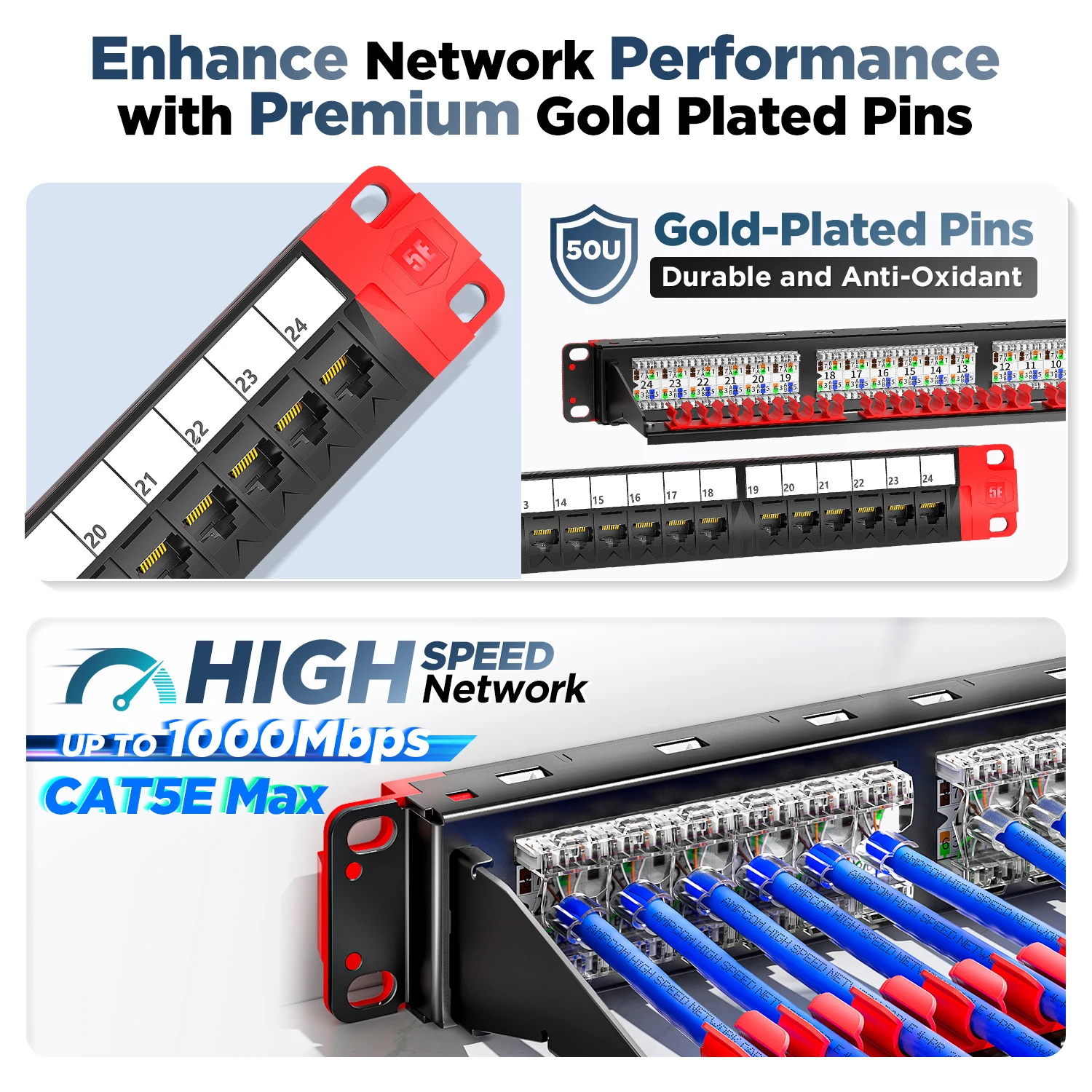 Comprar Panel de conexión UTP serie Industrial AMPCOM CAT5e de 24 puertos y 19 ", contactos jack chapados en oro de 50U con inserciones a prueba de polvo y Mini pelador