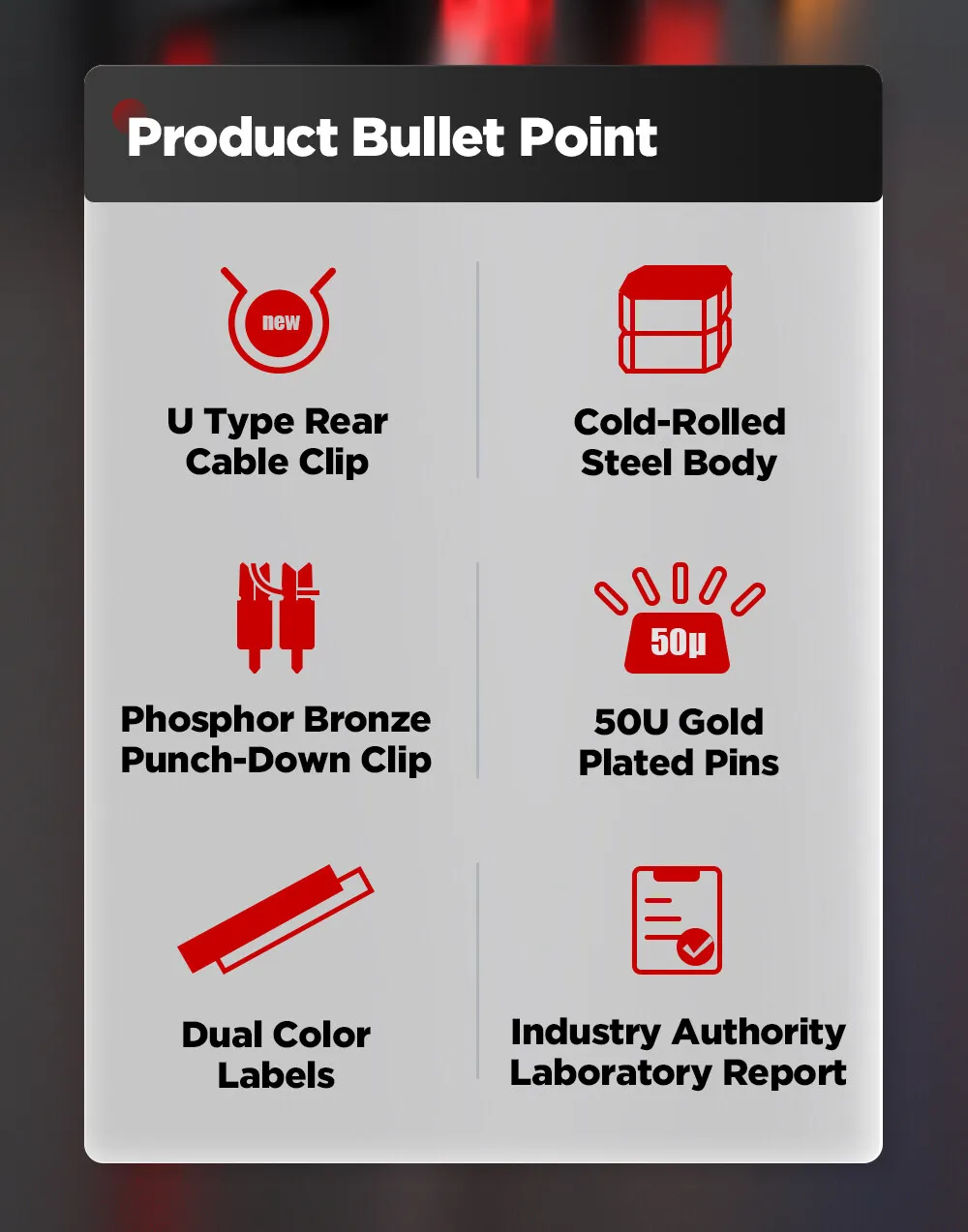 Interfaz de red RJ45 estándar, con pines de alta calidad chapados en oro de 50U, resistentes a la corrosión y antioxidantes, más duraderos