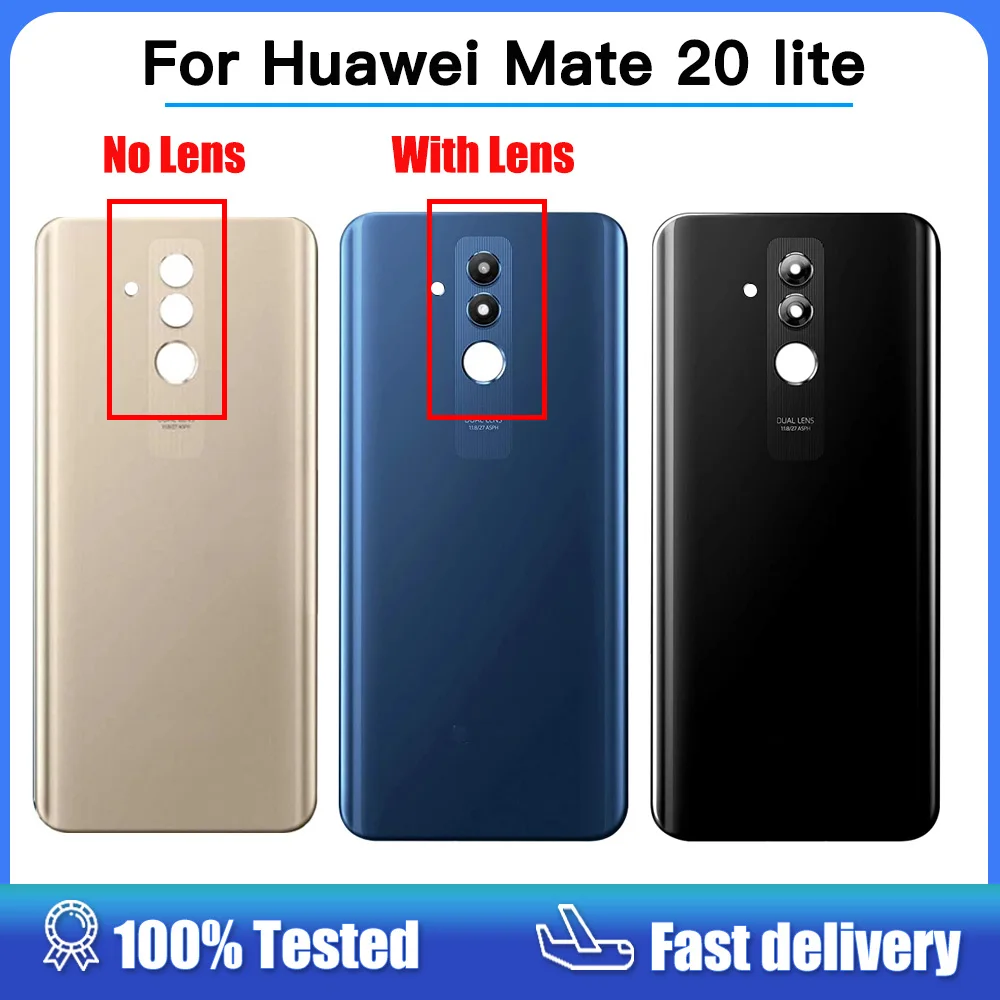 Comprar Panel de cristal trasero para Huawei Mate 20 Lite, carcasa con lente de cámara, cubierta de batería de repuesto para Huawei Mate20lite