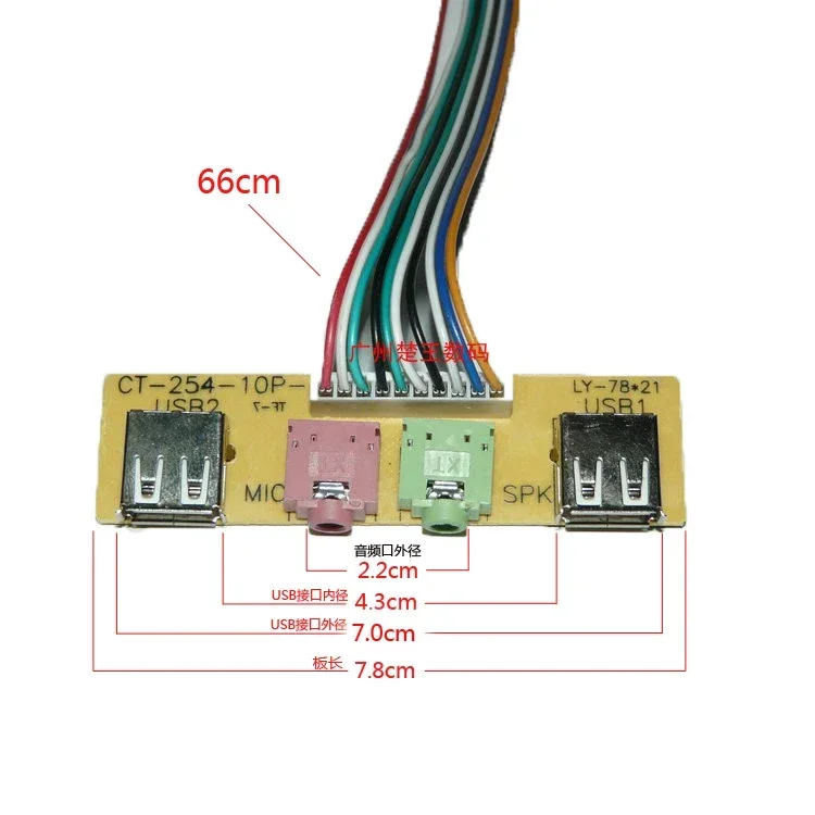 Comprar Panel frontal de 2 puertos USB 2,0 + Micrófono, Cable de puerto de Audio de 3,5mm, PCB de 7,8 cm, nuevo