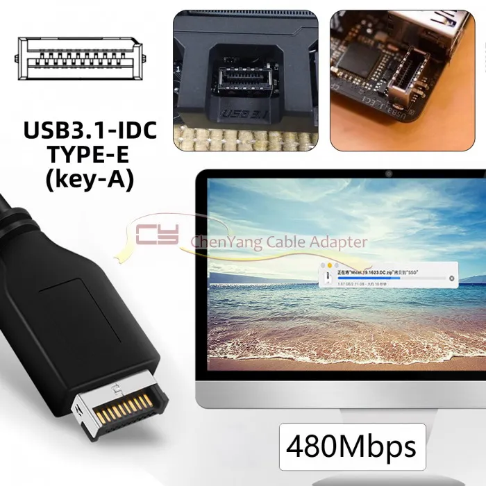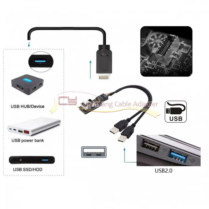 Comprar Panel Frontal Dual USB 3,1, adaptador de extensión de Cable macho, key-a, tipo-e A USB 2,0, tipo-a y 9Pin, 10 pines