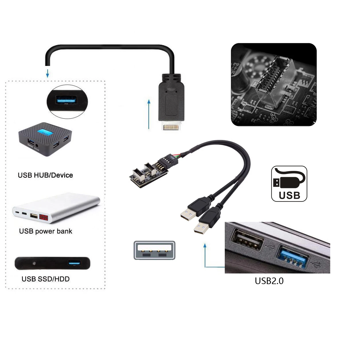 Comprar Panel Frontal Dual USB 3,1, adaptador de extensión de Cable macho, key-a, tipo-e A USB 2,0, tipo-a y 9Pin, 10 pines