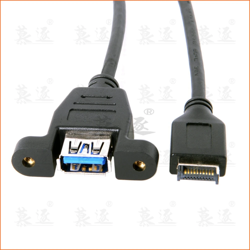 Cabezal de Panel frontal USB 3,1 A Cable de extensión hembra tipo A USB 3,0 tipo A tipo de montaje en Panel de 50cm El USB 3,1 requiere un encabezado de panel frontal diferente al USB 3,0. La interfaz del puerto USB 3,1 utiliza el conjunto de pines USB 3,0 y más. Está diseñado para ser compatible con versiones anteriores (se explica más tarde). Aún no hay ninguna versión oficial de las especificaciones para el encabezado USB 3,1 (al escribir esto),. Pero la primera placa base con esta es la fórmula ASUS ROG MAXIMUS IX, STRIX Z270I/Z270G, etc. Longitud: 50cm Conector 1: USB 3,0 hembra tipo A Conector 2: encabezado del Panel frontal USB 3,1