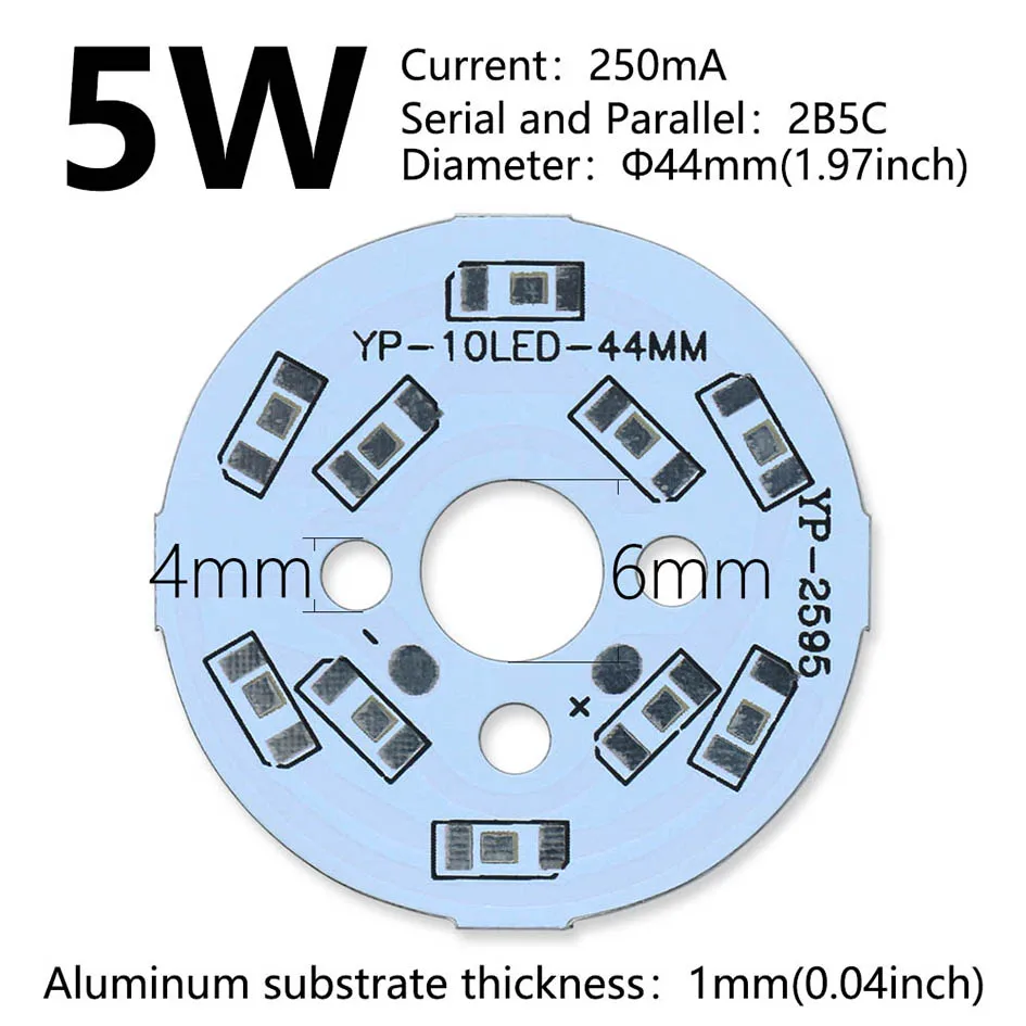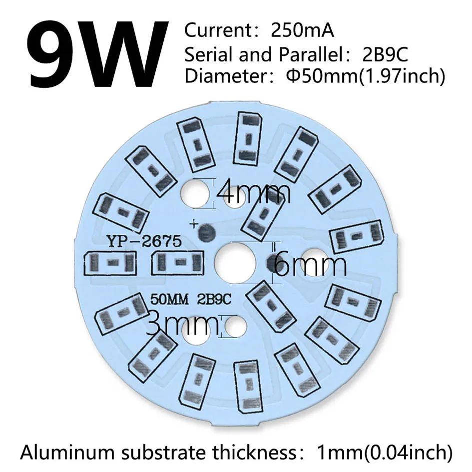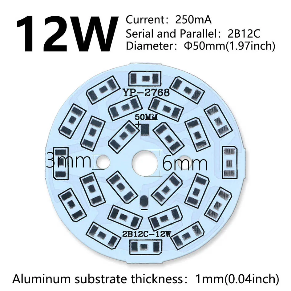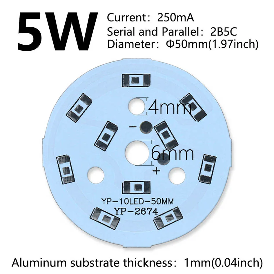 Panel de lámpara LED PCB de 10 piezas, 2W, 3W, 4W, 5W, 7W, 9W, 12W, disipador térmico de alto brillo, tablero de luz redondo de sustrato de aluminio para cuentas de lámpara DIY