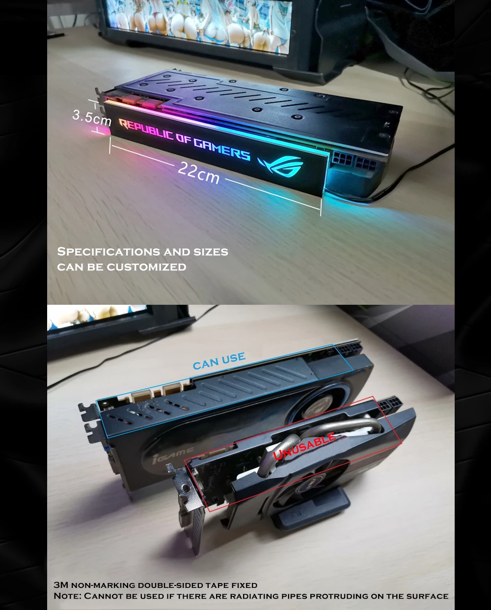 Comprar Panel lateral de GPU RGB para decoración de armario, placa de iluminación RGB personalizada de 5V3PIN/12V4PIN ARGB VGA, PC, AURA SYNC, enfriador de agua