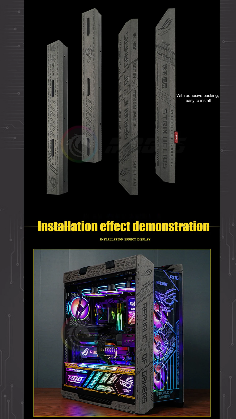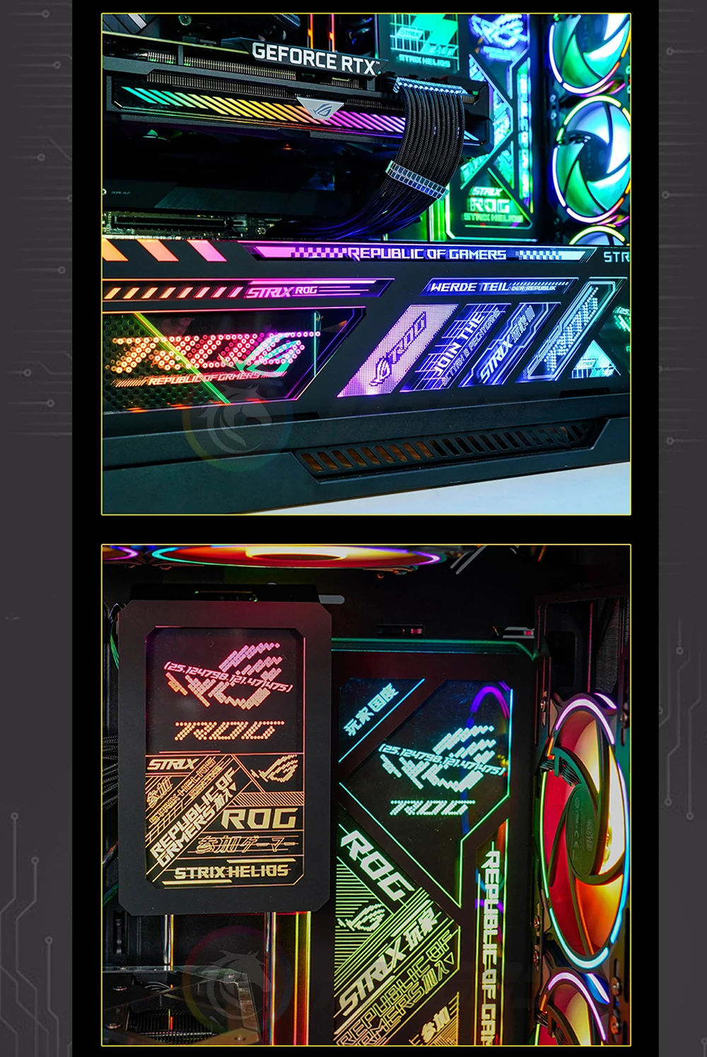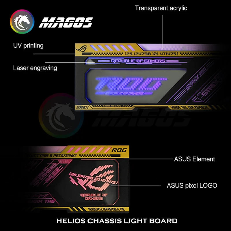 Comprar Panel de luz RGB con placa trasera, Pantalla dinámica para Asus ROG Strix Helios Case,PC Gamer DIY, decoración de caja de computadora LED, sincronización M/B de 5V