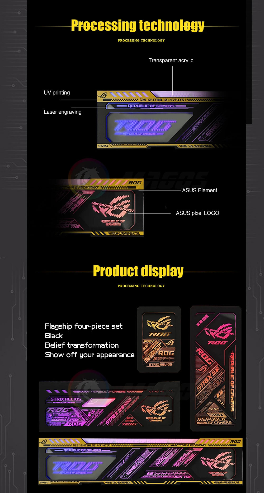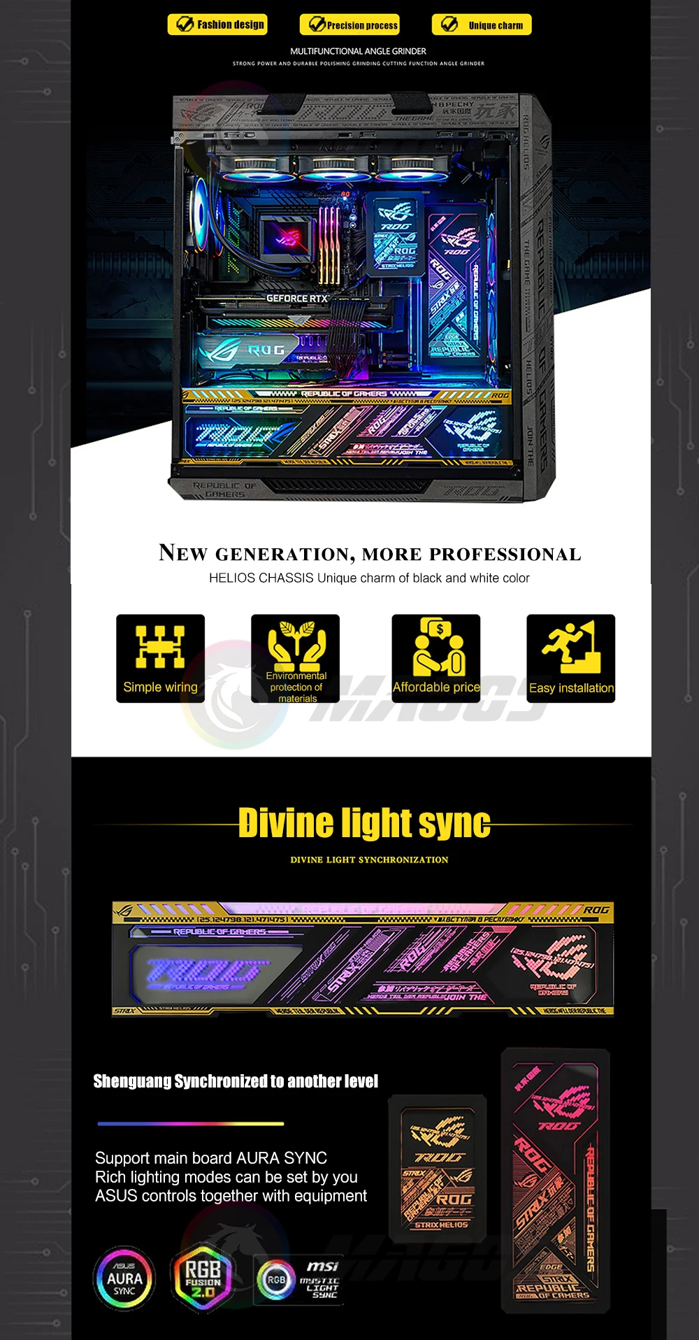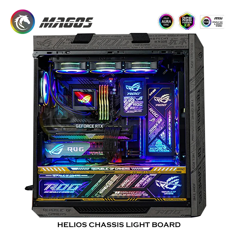 Panel de luz RGB con placa trasera, Pantalla dinámica para Asus ROG Strix Helios Case,PC Gamer DIY, decoración de caja de computadora LED, sincronización M/B de 5V