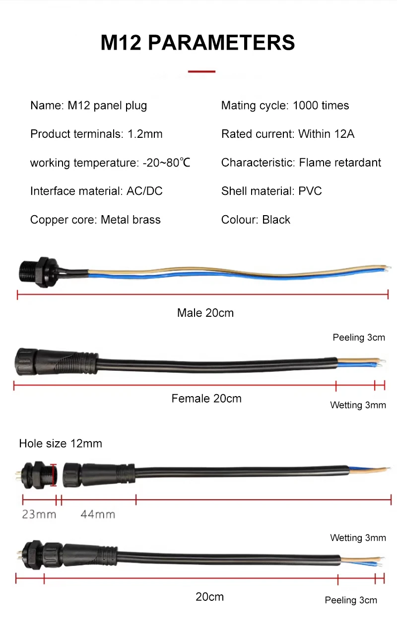 Panel M12 enchufe impermeable 2 3 4 5 pines conectores de aviación Industrial 0,5/0,75/1,0 cuadrado macho hembra acoplamiento rápido IP68