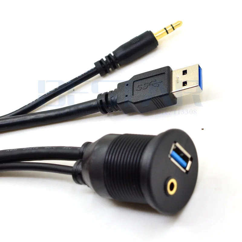 Comprar Panel de montaje empotrado de Moto para salpicadero de coche, Cable de extensión de plomo auxiliar m/F de 1M, USB 3,0, 3,5mm, estilismo para salpicadero de coche para motocicleta