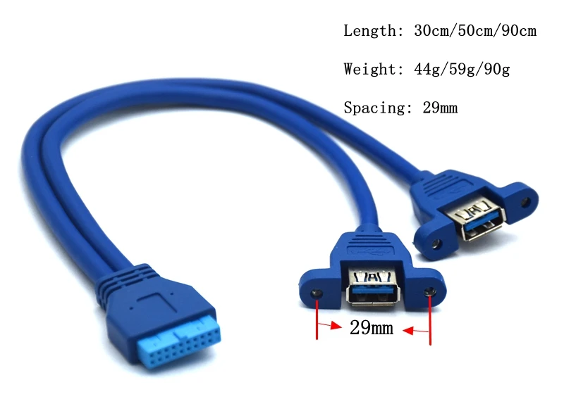 Comprar Panel de montaje de tornillo hembra a placa base, Cable de 20 pines, caja de PC, cables de 20 pines, 30cm, 50cm, 80cm, 2 unidades, USB 3,0, puerto Dual USB 3,0