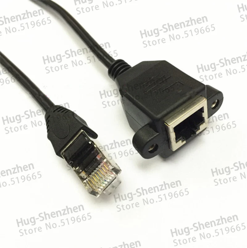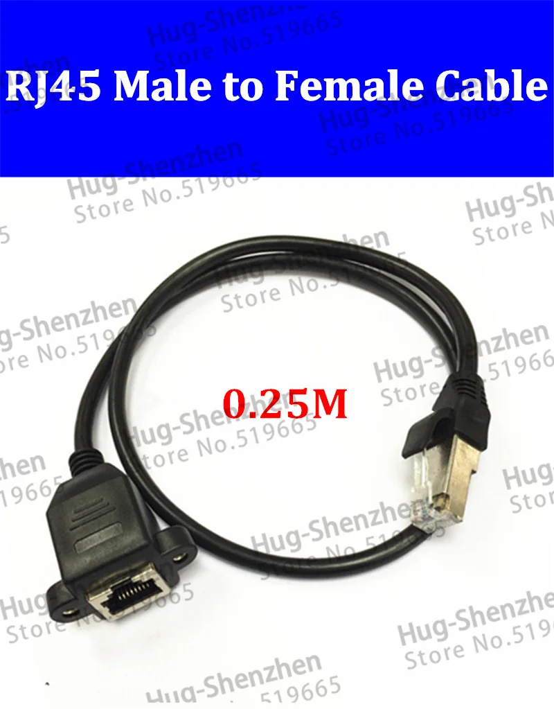 Comprar Panel de montaje de tornillo macho a hembra, Cable de extensión de red Ethernet LAN con oreja, 25CM, 0,25 M, RJ45, 10 unids/lote