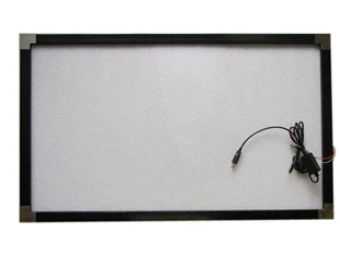 La pantalla táctil IR es un marco táctil que generalmente se instala delante de la pantalla. El marco está integrado con una placa de circuito impreso que contiene una línea de ir-led y transistores de fotos ocultos detrás del bisel del marco táctil. Cada LED IR y transistores de fotos se coloca en los lados opuestos para crear una rejilla de luz infrarroja invisible. El bisel protege las partes de la operación