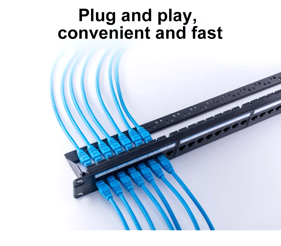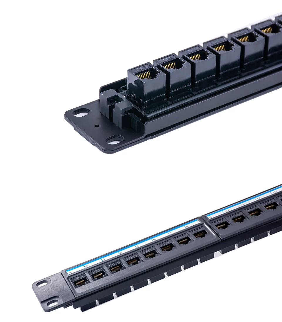 Comprar Panel de parche de acoplador pasante CAT6 de 24 puertos, Cable de red RJ45, 19 en 1U, con barra trasera, conector Keystone CAT6A UTP