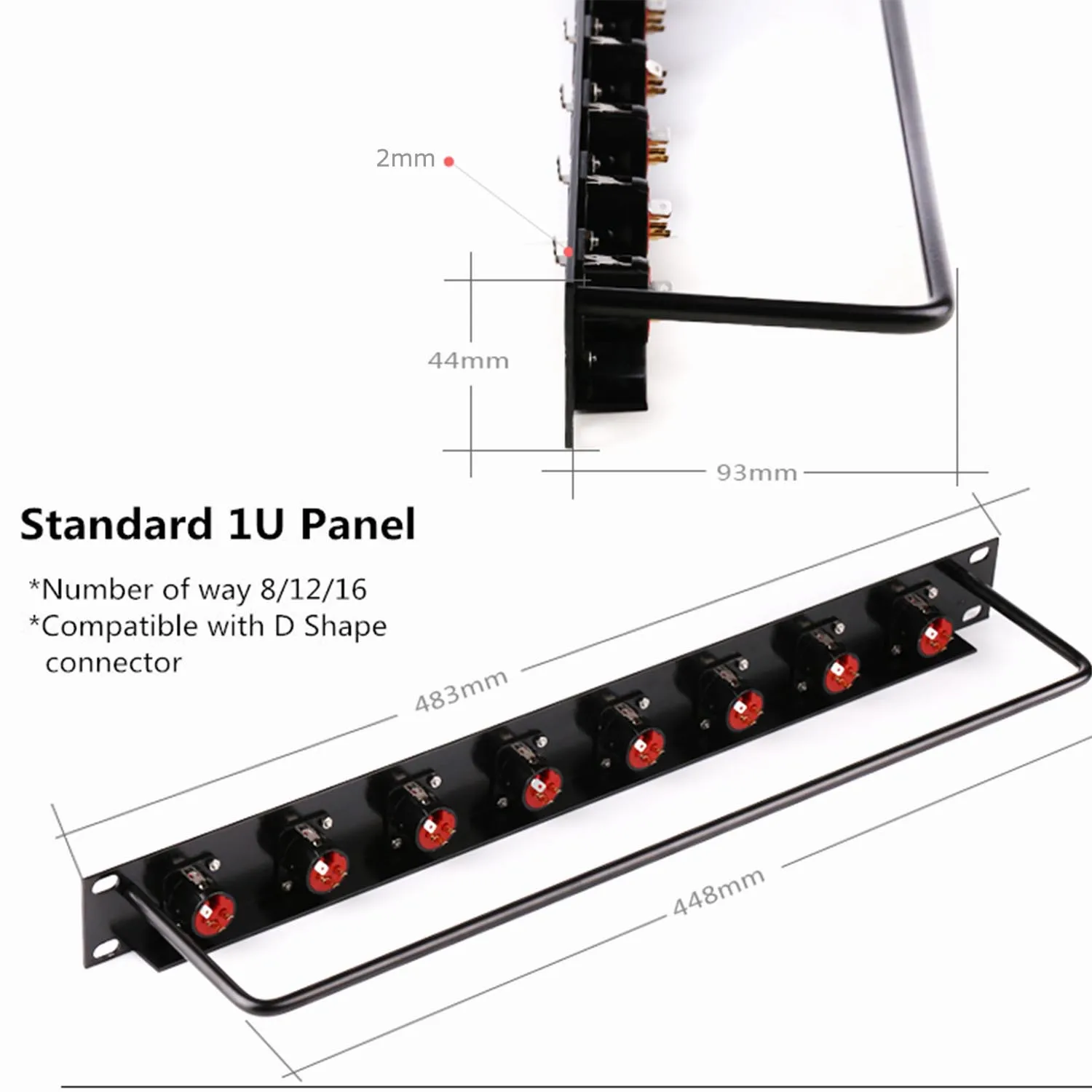 Comprar Panel de parche de estante, conector hembra XLR, 8, 12, 16 vías, Canon, 1U, estuche de vuelo, montaje para altavoz profesional, Cable de Audio 1U, 8D, 12D