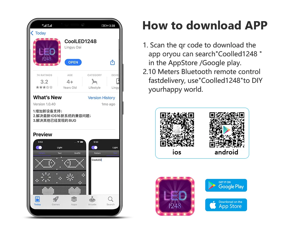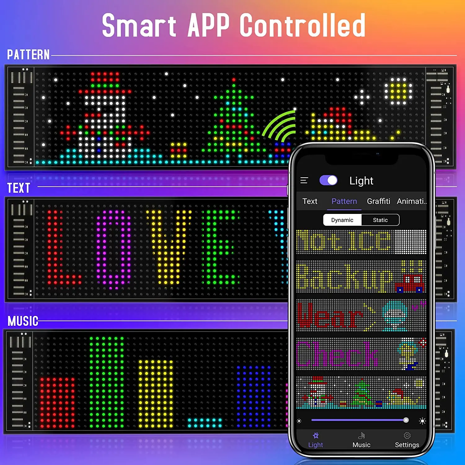 Conecte la matriz LED a través de la aplicación, puede diseñar texto, patrones, animaciones de acuerdo con sus propias necesidades y escenas, y también puede ajustar el brillo y la velocidad para satisfacer perfectamente sus necesidades.