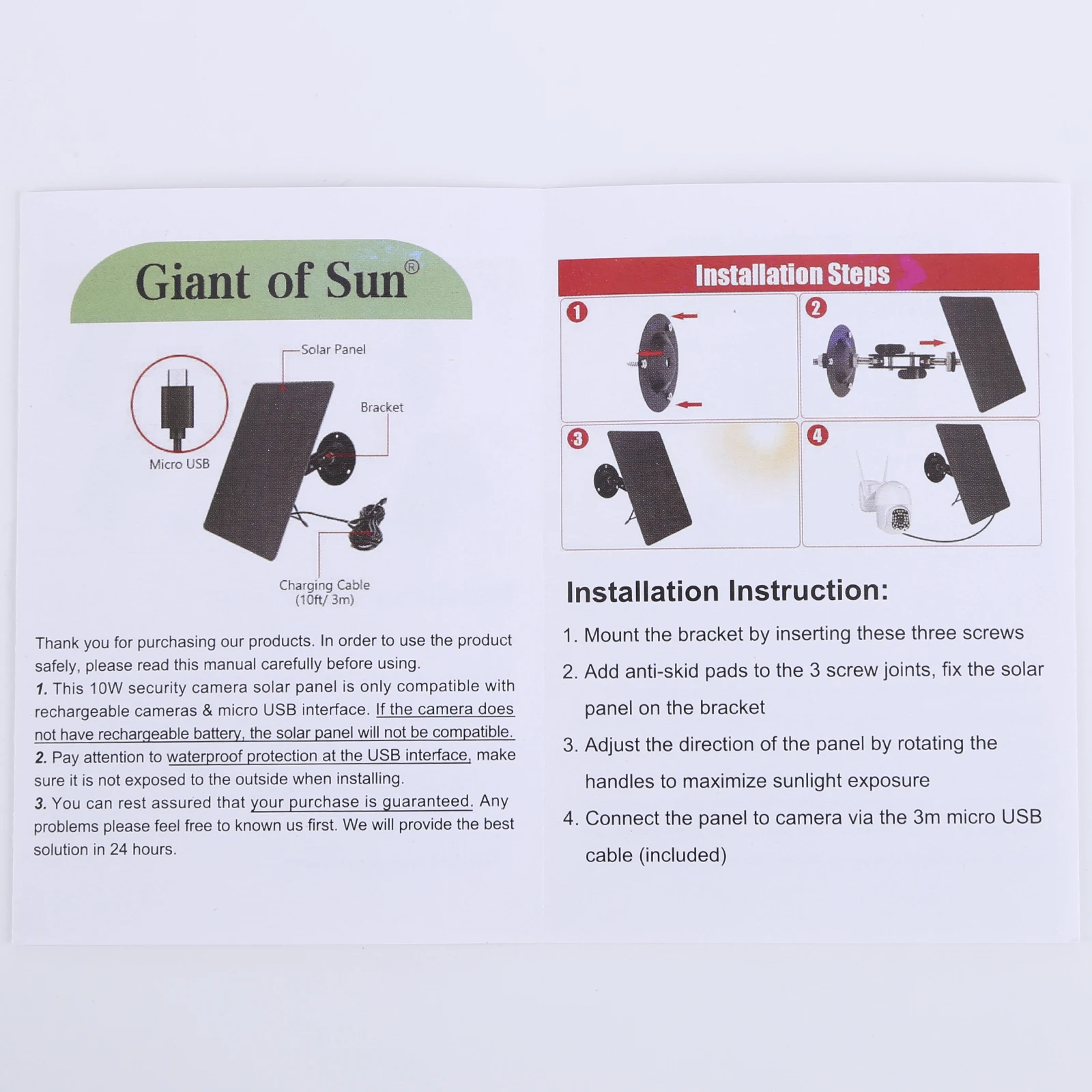 1 panel solar con accesorios de tornillo base