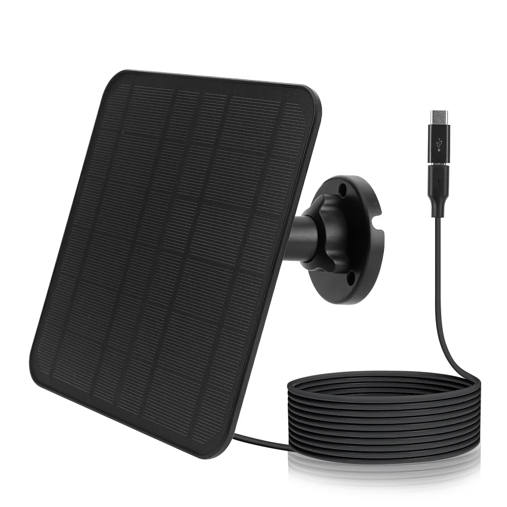 4.IP65 impermeable y resistente a la intemperie:DDiseñado con materiales resistentes a la intemperie, el panel de carga solar puede soportar condiciones duras, como lluvia, nieve, frío extremo y calor, lo que lo hace adecuado para uso en exteriores. Con un cable de alimentación de 3 metros, proporciona flexibilidad para cargar sus dispositivos en interiores o exteriores. Puede instalarlo en cualquier lugar al aire libre con abundante luz solar, asegurando una energía solar estable para sus cámaras de seguridad.