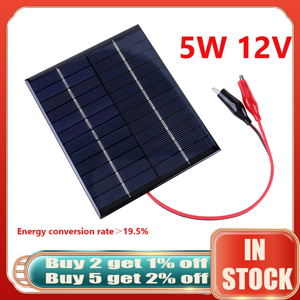Panel Solar impermeable de 5W y 12V para exteriores, cargador de células solares DIY, paneles de epoxi de polisilicio, 136x110MM para carga de batería de 9-12V