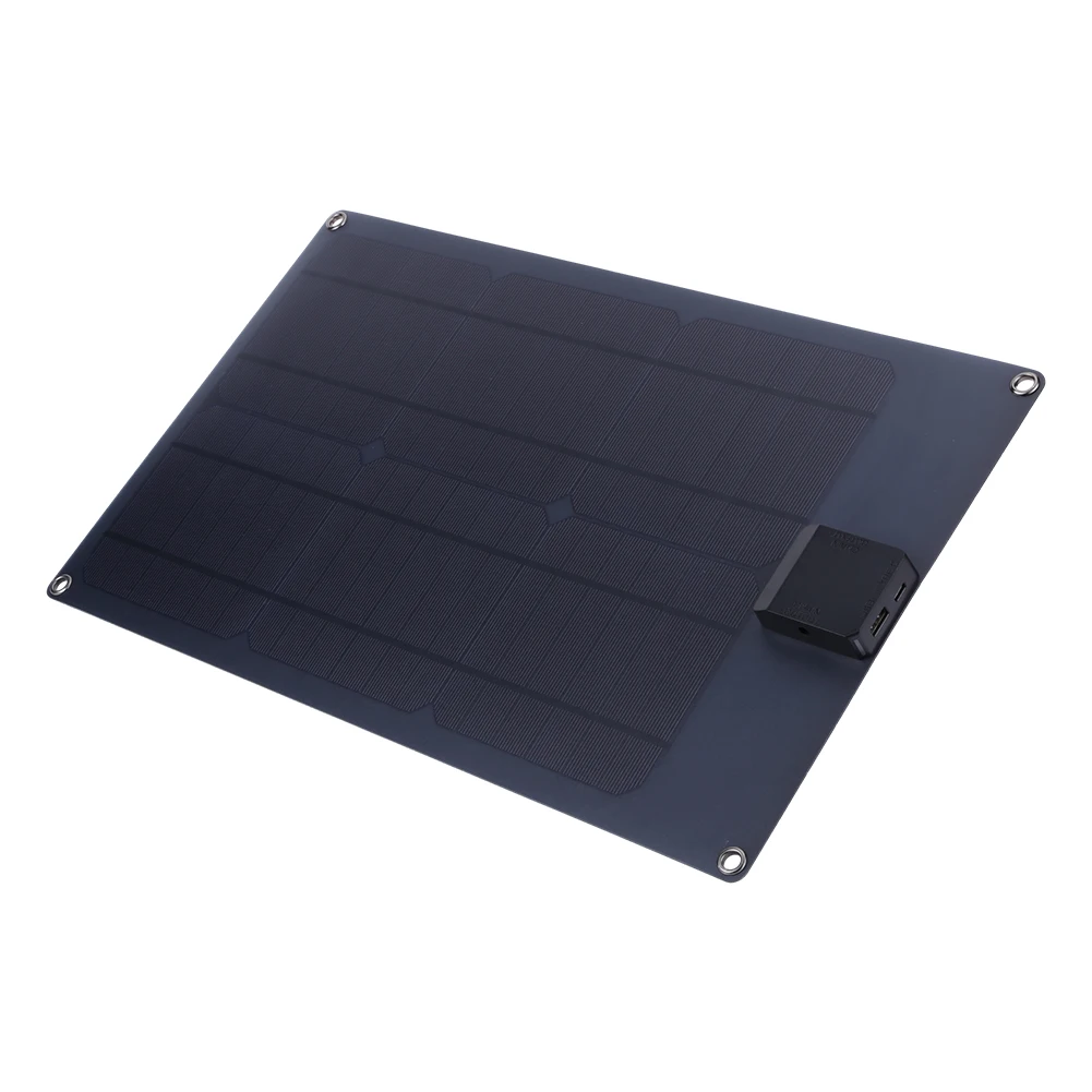 1. Operación eficiente:Este panel solar está hecho con paneles solares de silicio monocristalino utilizando el proceso PET + EVA + TPT. Con una potencia máxima de 15W y una eficiencia de hasta 20%, proporciona una mayor potencia de salida y una velocidad de carga más rápida en las mismas condiciones de luz solar. Puede disfrutar de una carga eficiente donde quiera que vaya.