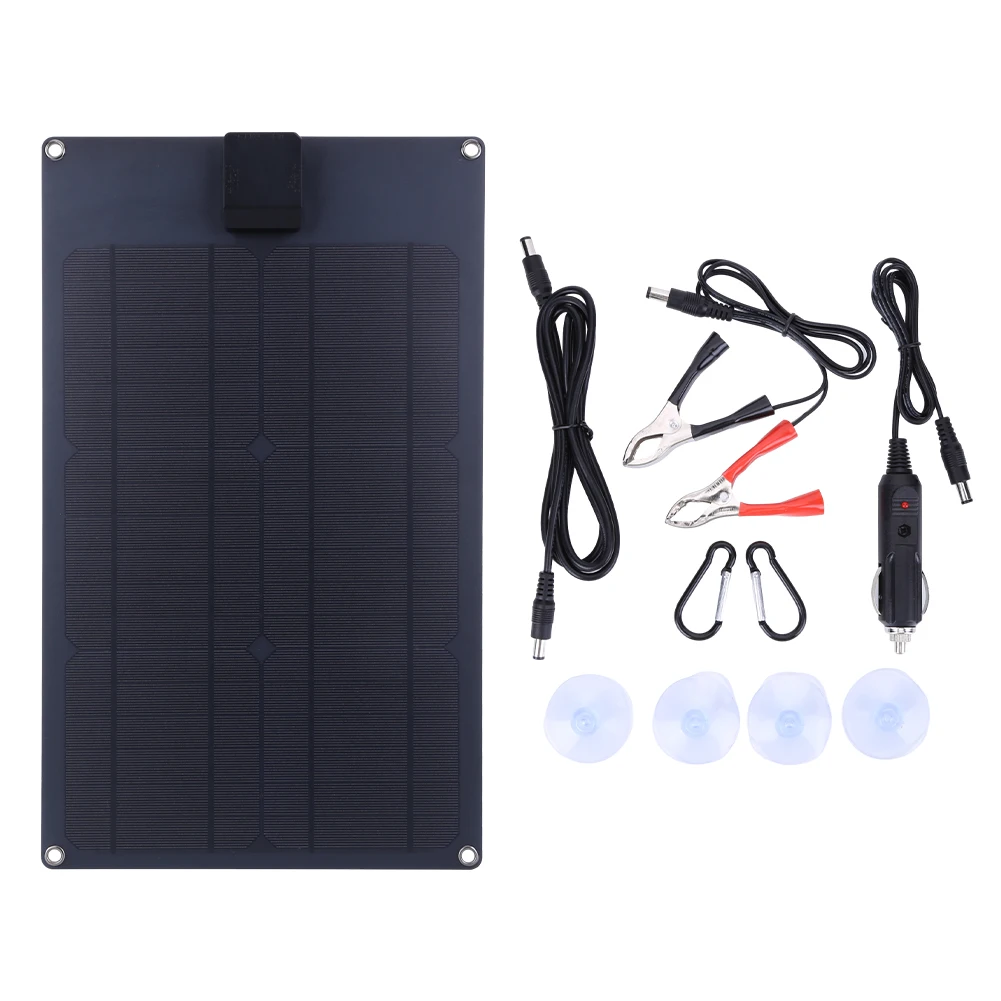 4. Amplia aplicabilidad:Este cargador de batería de panel solar viene con todos los accesorios necesarios, incluyendo pinzas de cocodrilo, cargador de coche, ventosas, ganchos y un cable de CC. Puede cargar varios dispositivos, como teléfonos de 5-12V, bancos de energía, baterías de automóviles, pequeños electrodomésticos, luces de emergencia, señalización publicitaria, semáforos, lámparas domésticas, ventiladores, bombas de agua Solares, farolas solares y pequeños sistemas solares. Su versatilidad lo hace adecuado para múltiples aplicaciones.