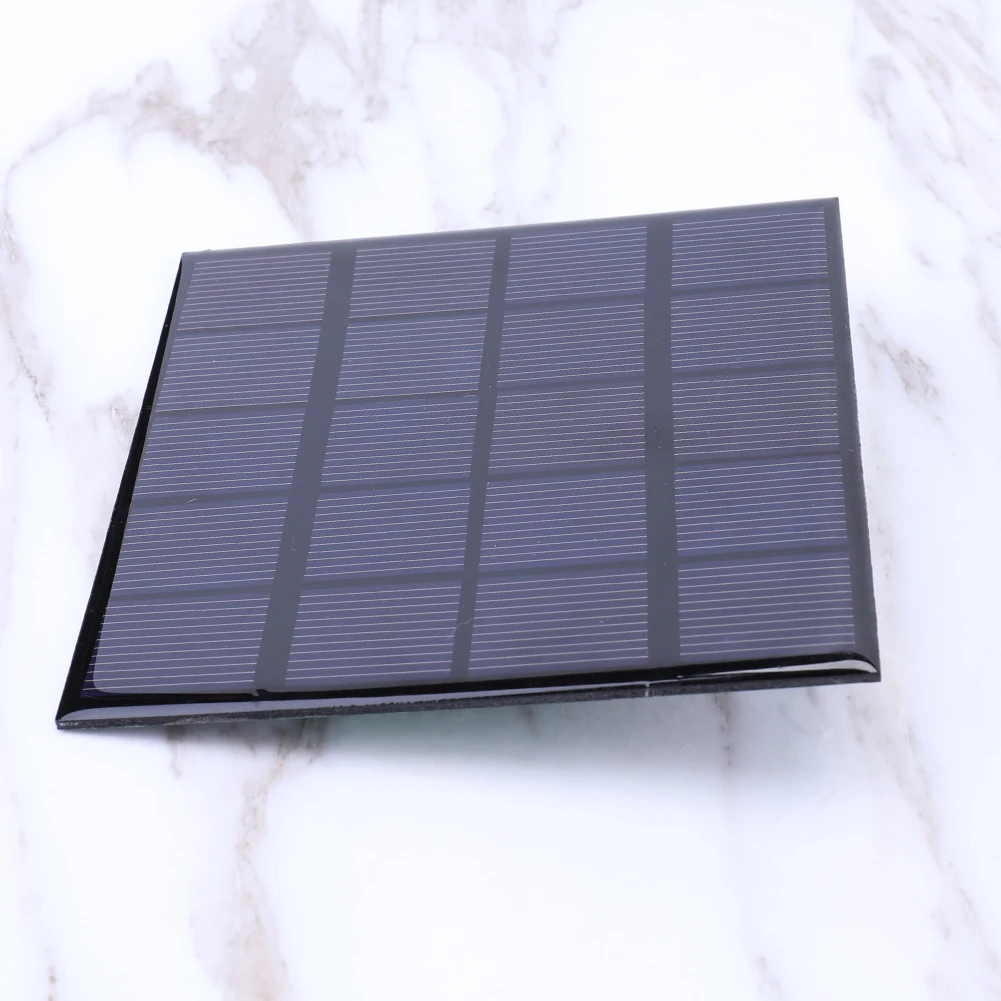 Especificación: Material: panel solar de silicio policristalino de clase A Proceso: Tablero epoxi Potencia: 3W (máx.) Corriente de trabajo: 0-240MA Corriente de cortocircuito: 250MA Voltaje de funcionamiento: 5V Voltaje de cortocircuito: 6,5 V Peso: aproximadamente 40G (incluido el embalaje) Tamaño: 100*100*3mm/3,94*3,94*0,12''