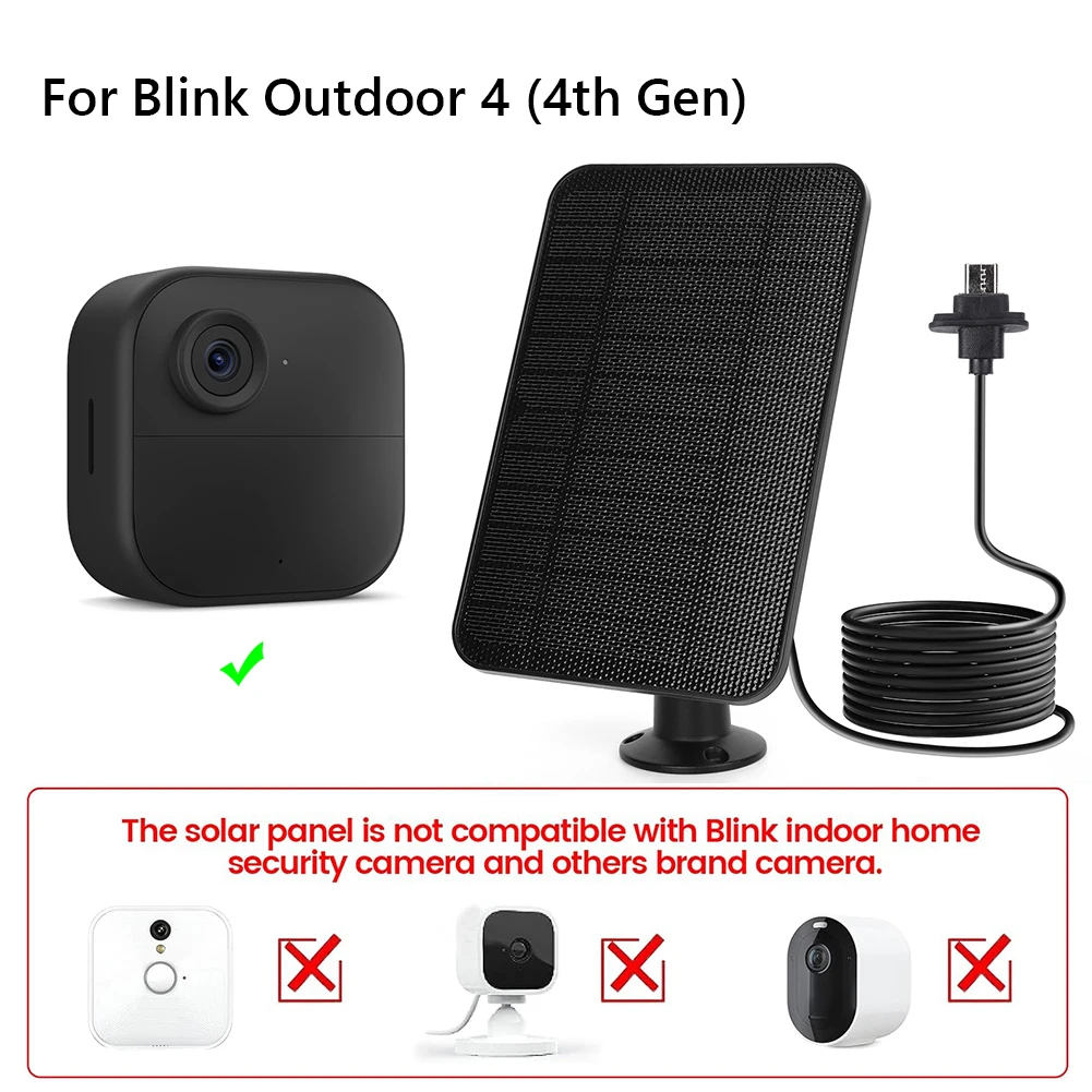 Característica:1. Diseño dedicado:Diseñado específicamente para Blink Outdoor 4 (4th Gen), este panel solar cuenta con una interfaz Tipo-C dedicada, que proporciona una fuente de alimentación ininterrumpida ideal para la cámara. Convierte la luz solar en energía para mantener su cámara encendida continuamente (retire la batería de la cámara antes de usarla). Nota: No apto para Blink Indoor 4 u otros modelos de cámara.