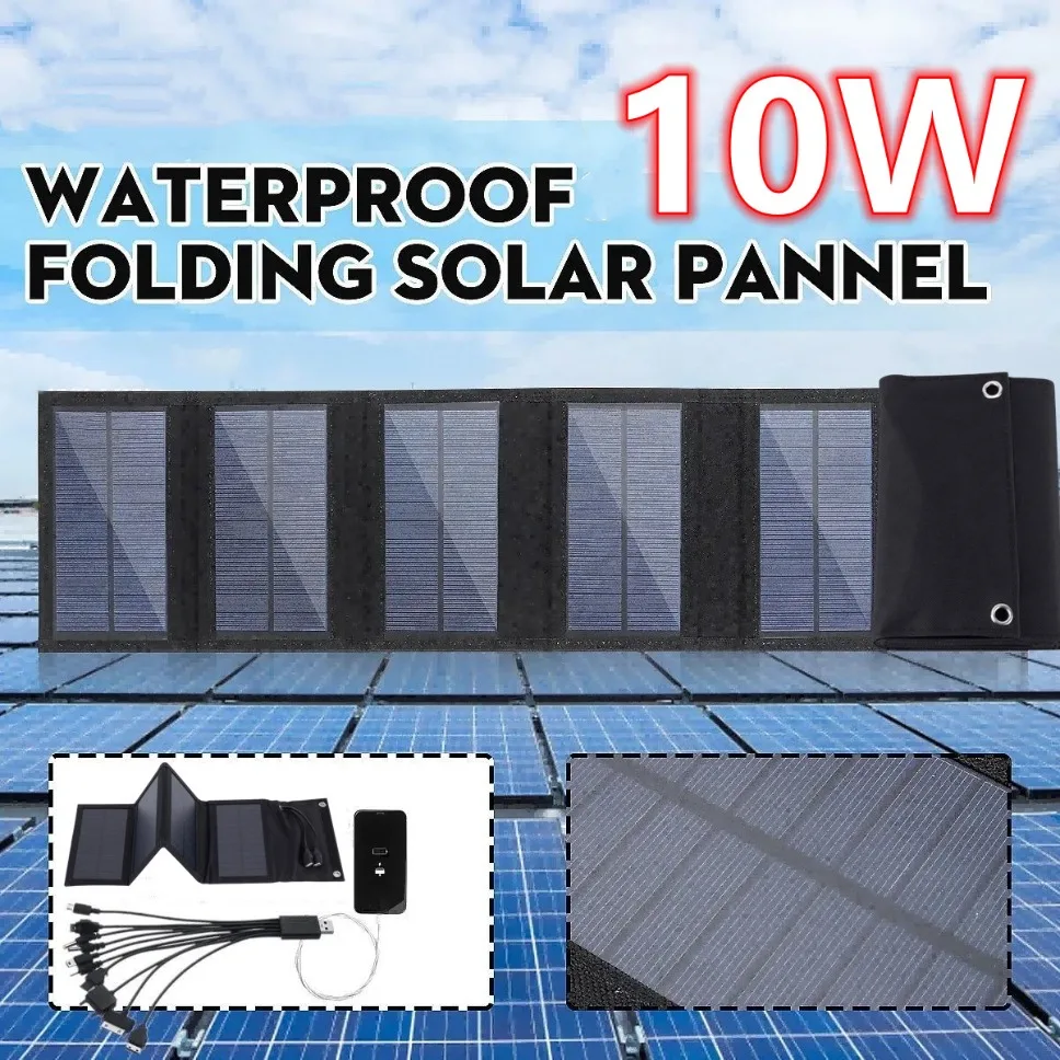 Comprar Panel Solar plegable y Flexible, cargador de batería portátil, resistente al agua, 5V, 2USB, 10W, para teléfono móvil, turismo y pesca al aire libre