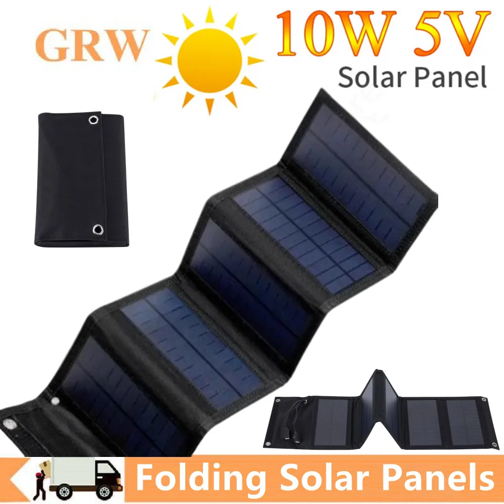 Comprar Panel Solar plegable y Flexible, cargador de batería portátil, resistente al agua, 5V, 2USB, 10W, para teléfono móvil, turismo y pesca al aire libre