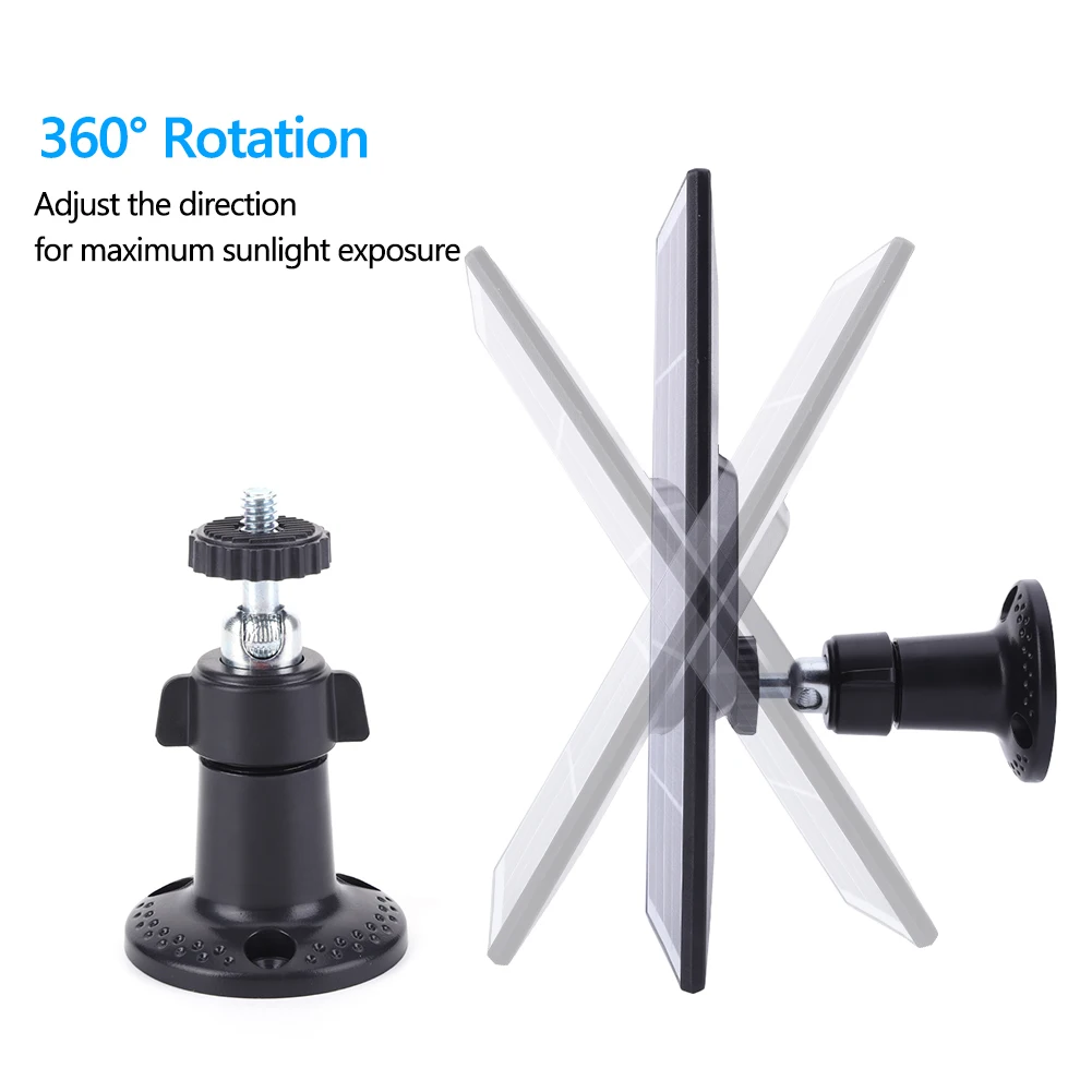 3.EAs Instalación:El cargador del panel solar no tiene batería incorporada y utiliza la luz solar para cargar la batería del timbre.Puede instalarlo en cualquier lugar exterior, asegurando el mejor ángulo para recibir suficiente luz solar.Simplemente taladre un agujero en la pared e instale el 360° Soporte de pared giratorio, mire el panel solar hacia la luz solar directa y conecte el cable de carga de 9,8 pies (3 m) con el conector en forma de U a los dos puertos en la parte posterior de la batería del timbre.
