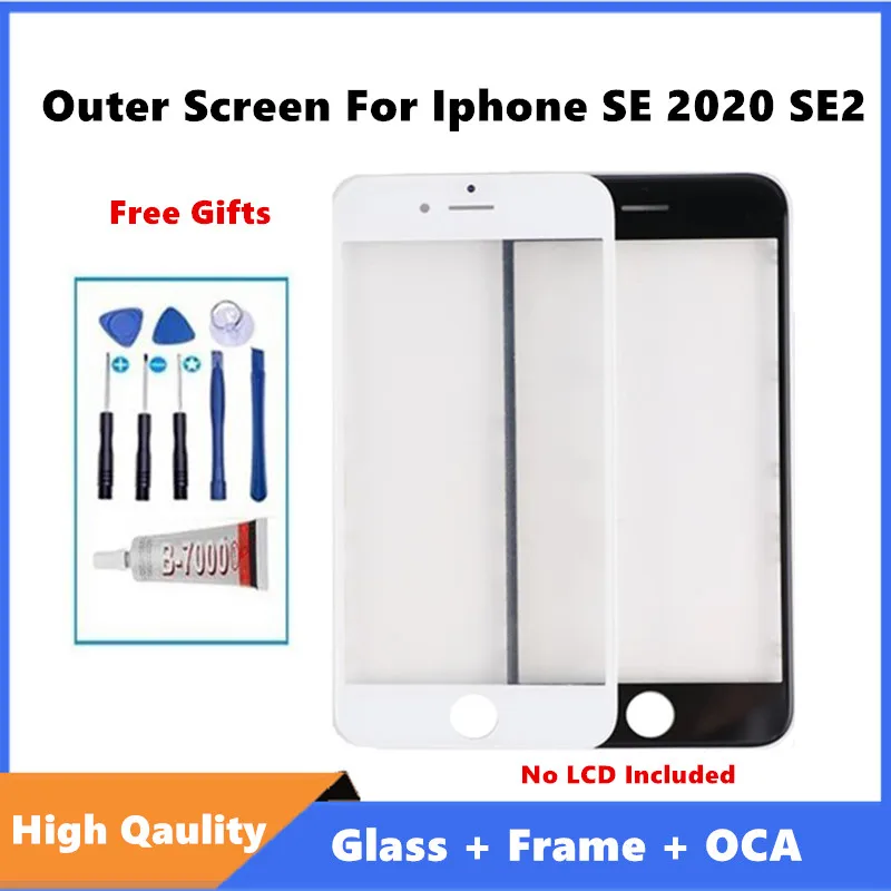 Comprar Panel táctil frontal de alta calidad para iPhone SE 2020 SE2, piezas de reparación de pantalla exterior, cubierta de vidrio, piezas de reparación de lente + OCA