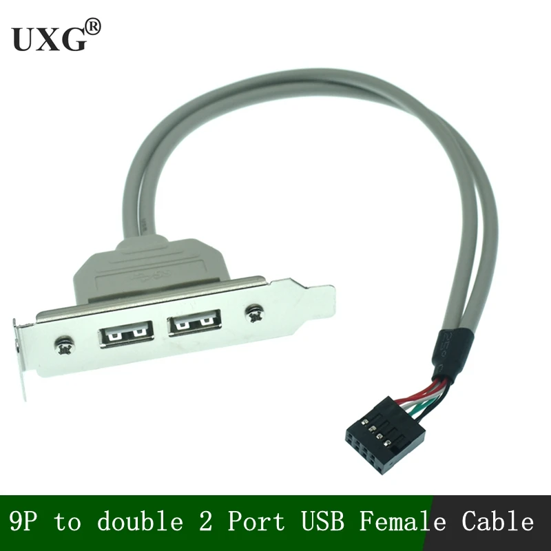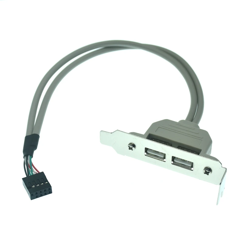 Comprar Panel trasero hembra USB 2,0 de 2 puertos a placa base, adaptador de Cable conector de cabezal de 9 pines con soporte de placa de ranura PCI de 30cm y 50CM