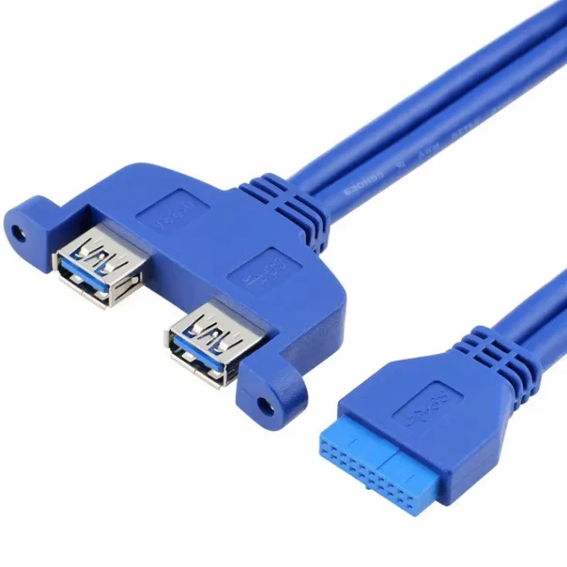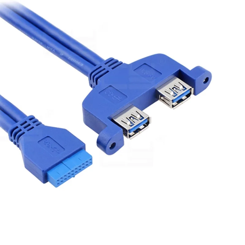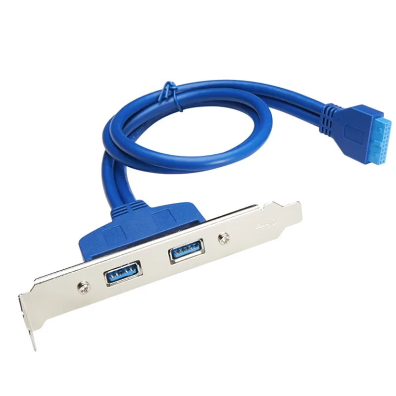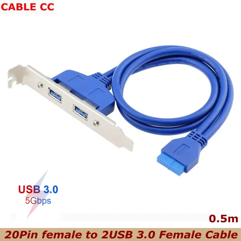 Comprar Panel trasero hembra USB 3,0 de 2 puertos a placa base, adaptador de Cable conector de cabezal de 20 pines con soporte de placa de ranura PCI de 50cm